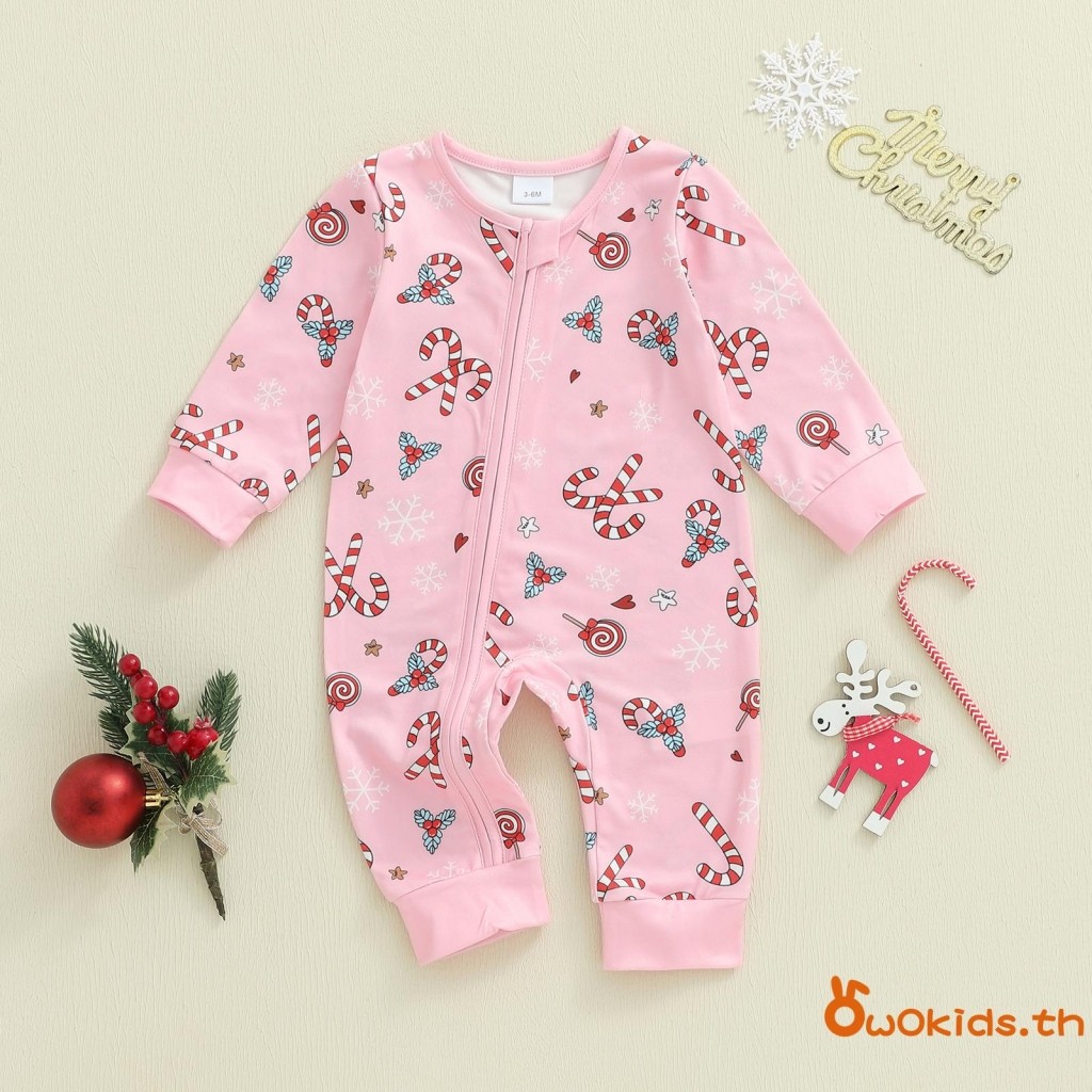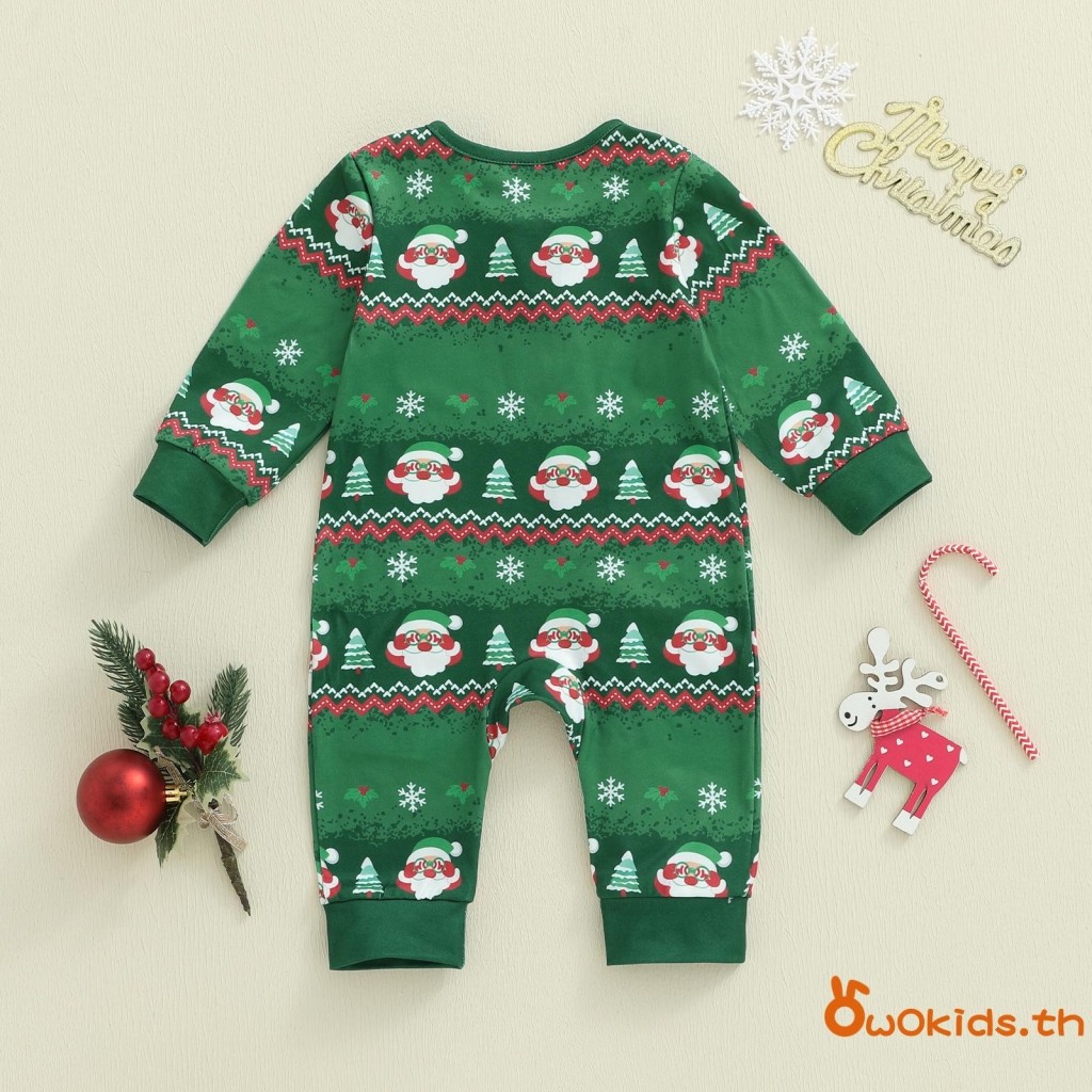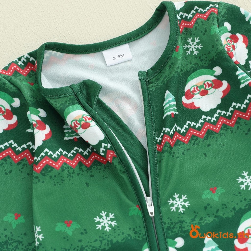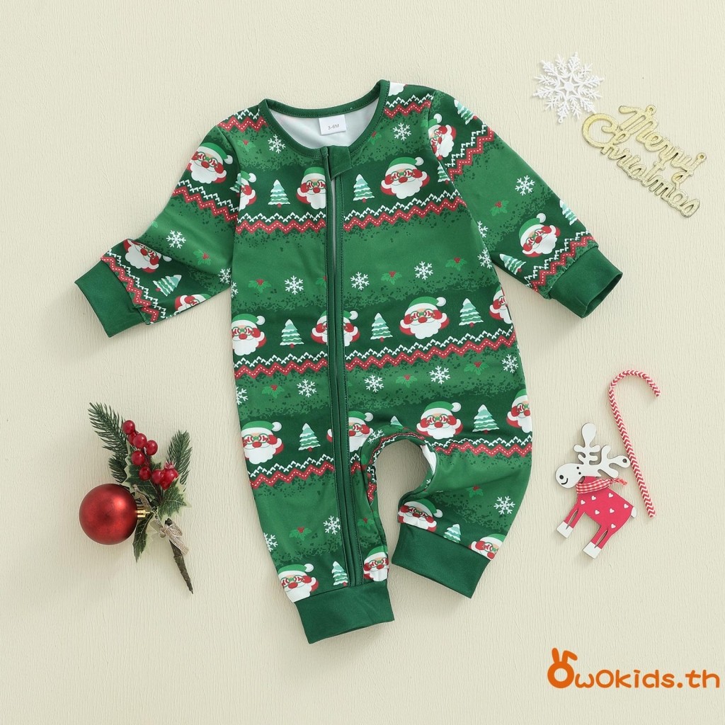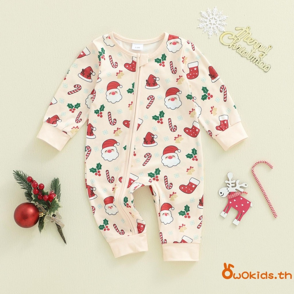 ชุดคริสต์มาสสำหรับทารกแรกเกิด แขนยาวแบบซิปรอบคอ พิมพ์ลายซานตาคลอส สวมใส่ง่ายสำหรับเด็กชายและเด็กหญิง