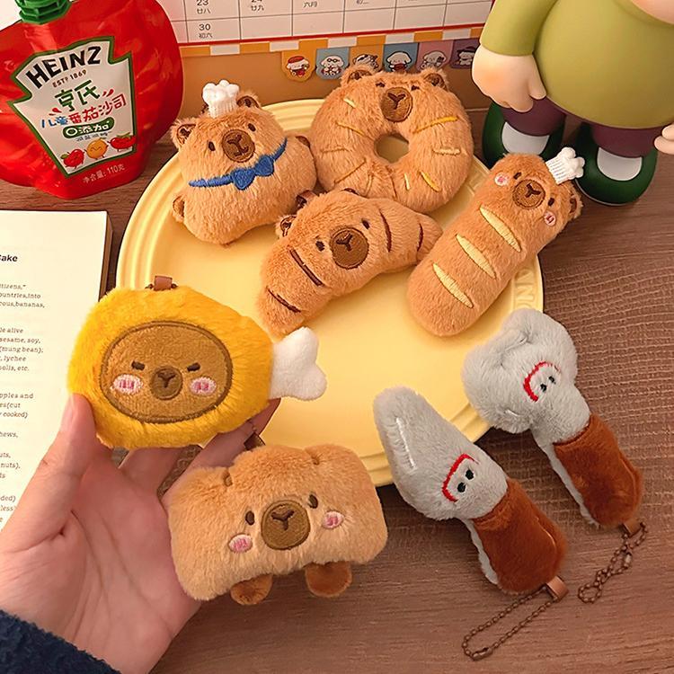 Kapibara ตุ๊กตาตุ๊กตาจี้ตุ๊กตาน่ารักรูปขนมปังกระเป๋าเป้สะพายหลังจี้ของขวัญ SP134