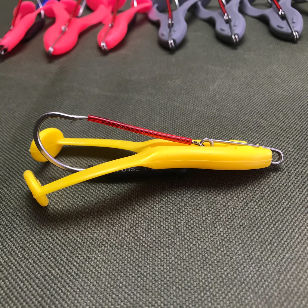 กบยางตีนเตะขนาด 9 เซ็น ตัวเบ็ด ขนาด 6/0 คมแข็ง มี 7 สี น้ำหนักดี ตีไกล ขึ้นน้ำไว น้ำหนัก 14 กรัม เนื้อยาเหนียวนุ่ม แอคชั