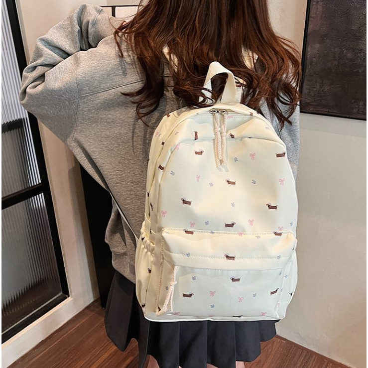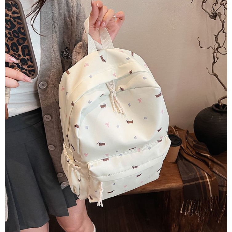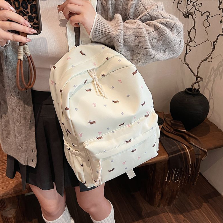 กระเป๋าเป้ลายลูกสุนัขสไตล์ญี่ปุ่นสุดน่ารัก ลายดอกไม้ เหมาะสำหรับนักเรียนมัธยมต้นและนักศึกษา กระเป๋าเป้สไตล์ดัชชุนด์