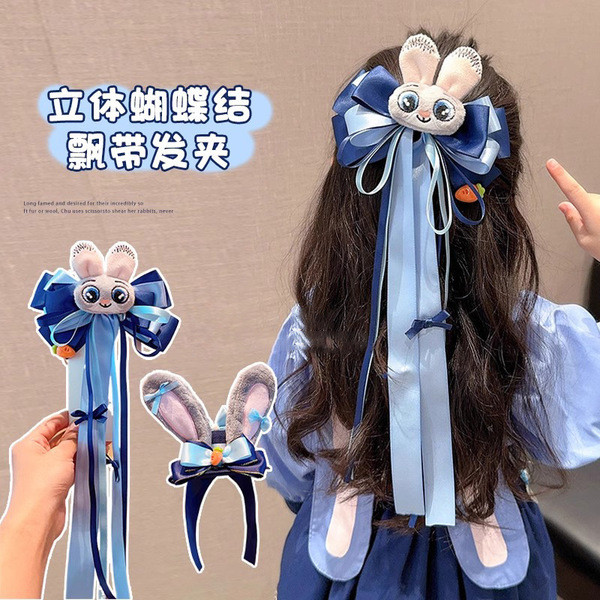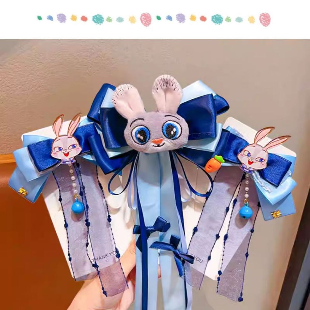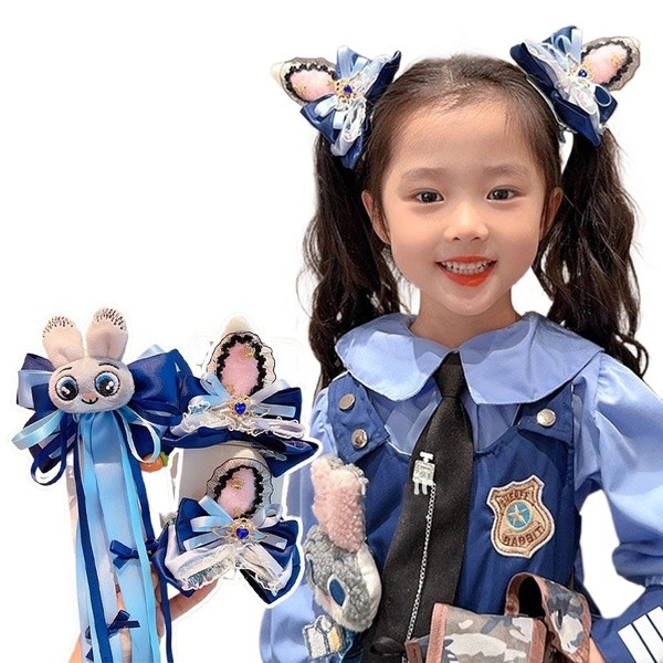 Zootopia ???Crazy Animal City กระต่ายตํารวจเจ้าหน้าที่อุปกรณ์ผมเด็ก Judy Bow Hairpin เด็กน่ารักการ์ตูน Streamer Hairpin สาว Headwear