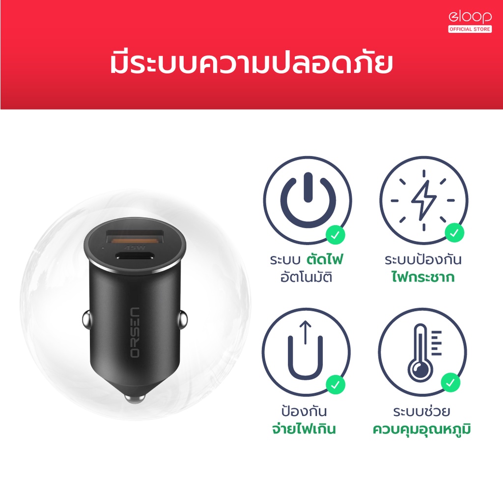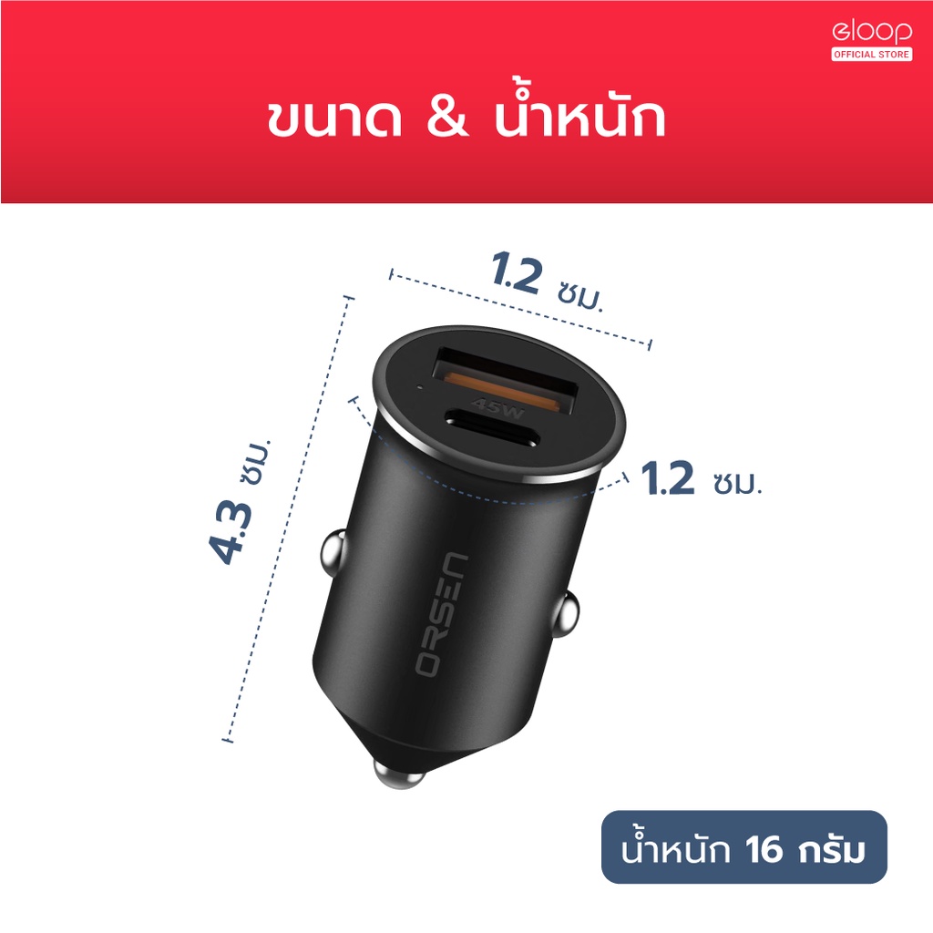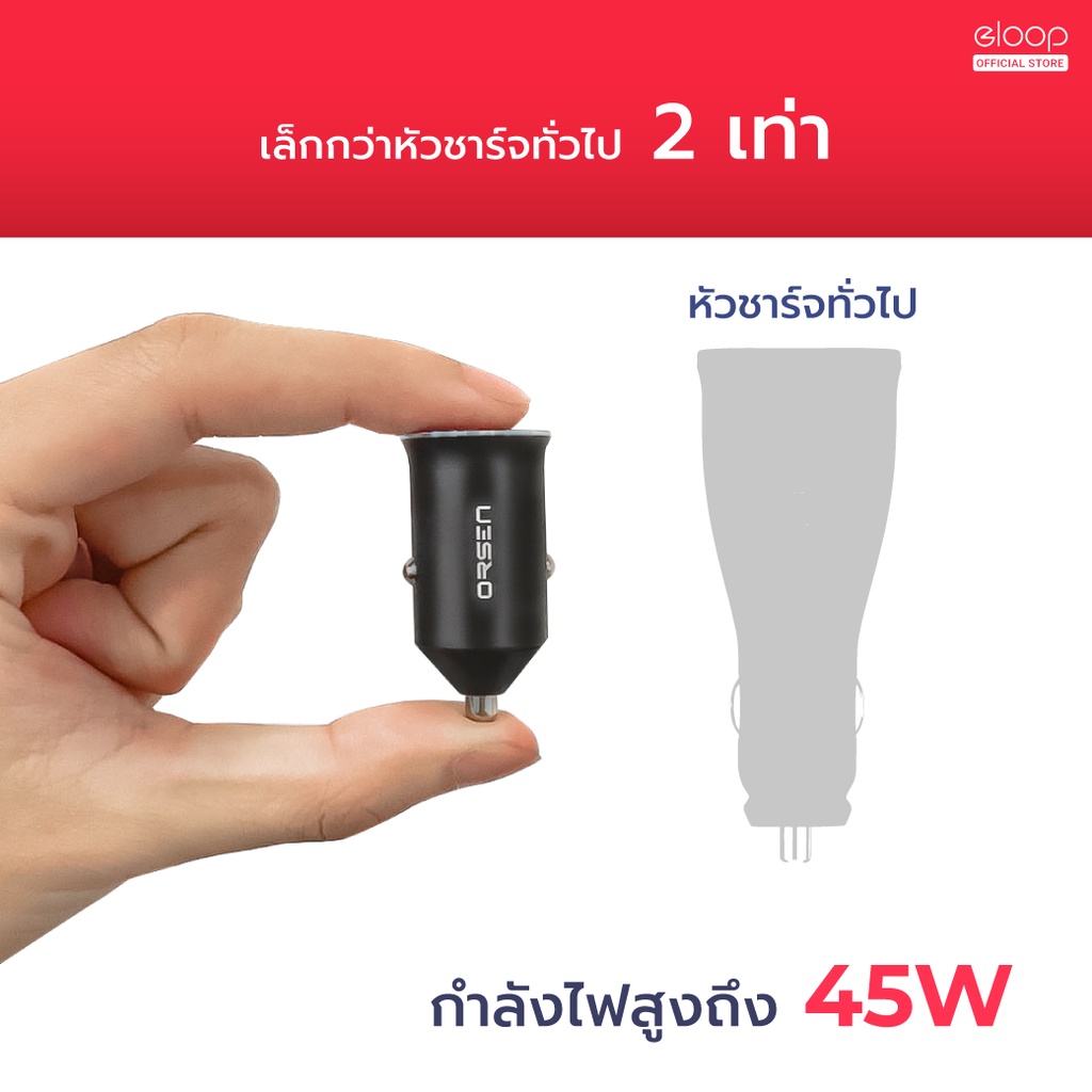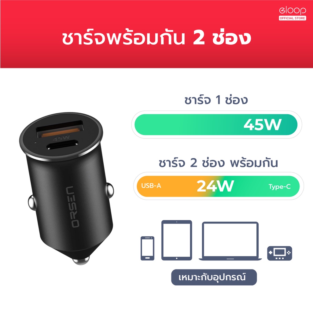 ใหม่ล่าสุด!! ชาร์จในรถได้เร็วกว่าเดิม 3 เท่า ที่ชาร์จในรถ Eloop C8 Mini Car Charger 45W Max 2 Port USB-A & Type C รองรับ PD l QC 4.0 l SCP l FCP ดีไซน์ขนาดเล็กกว่าที