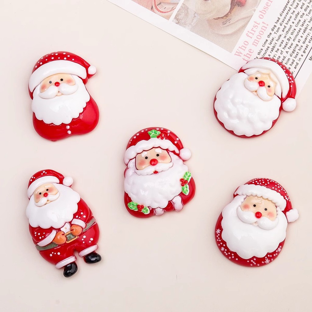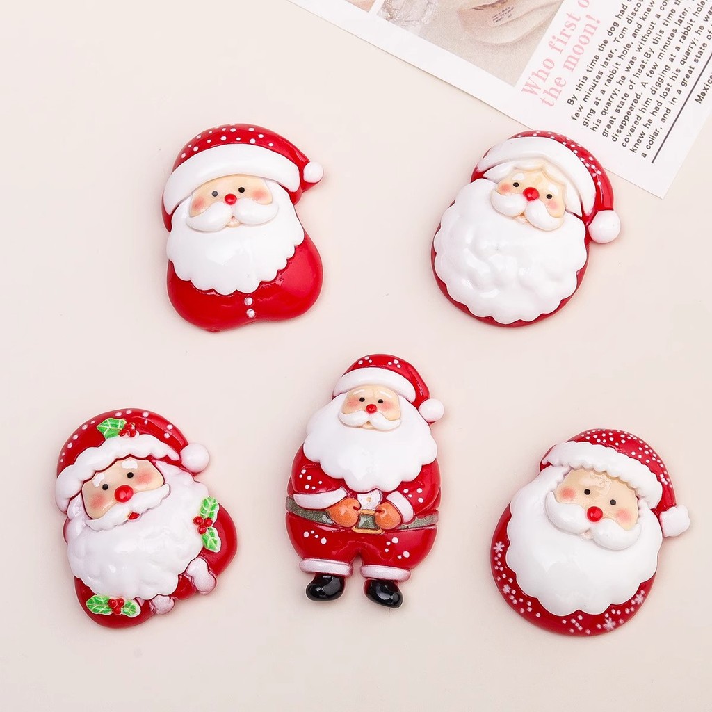เรซิ่นลายหัวซานตาคลอส 5 ชิ้น วัสดุตกแต่งDIY อุปกรณ์เสริมทำแม่เหล็กติดตู้เย็น คลิปผม เคสโทรศัพท์ ของตกแต่งคริสต์มาส งานฝีมือทำเอง