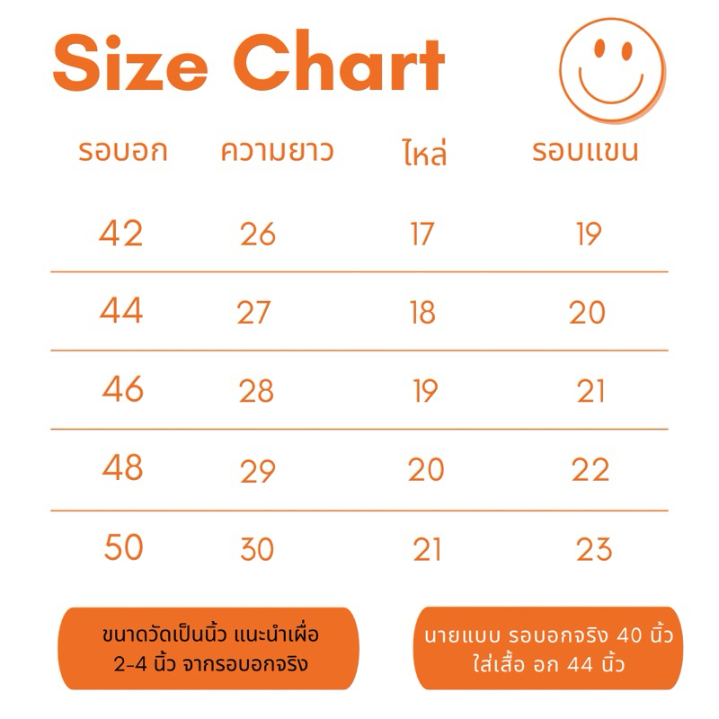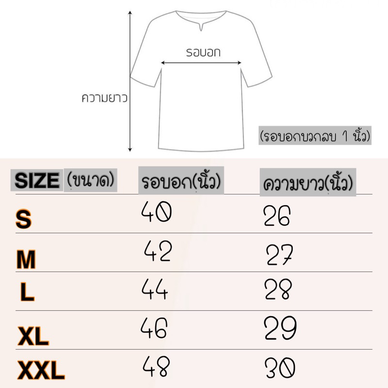 ไซส์ ไหล่ อกเสื้อ เสื้อยาว แขนยาว (หน่วยเป็นนิ้ว)
