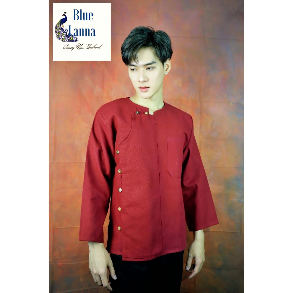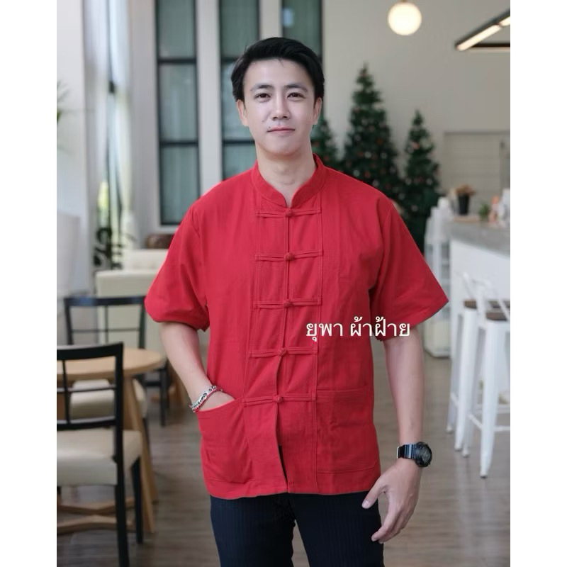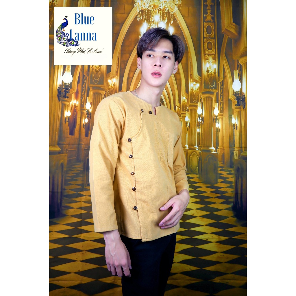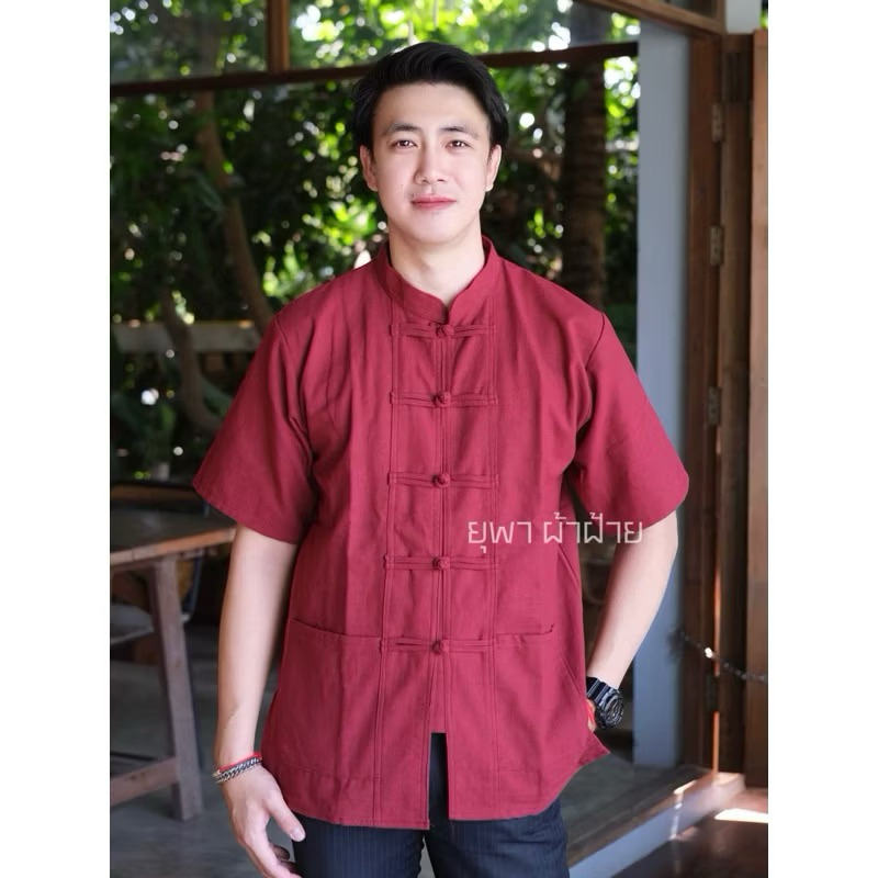 ✴เสื้อซาฟารี ผ้าไทย เสื้อผ้าไทยผู้ชาย แขนยาว คอพระราชทาน ((อัดผ้ากาว มีฟองน้ำเสริมไหล่))