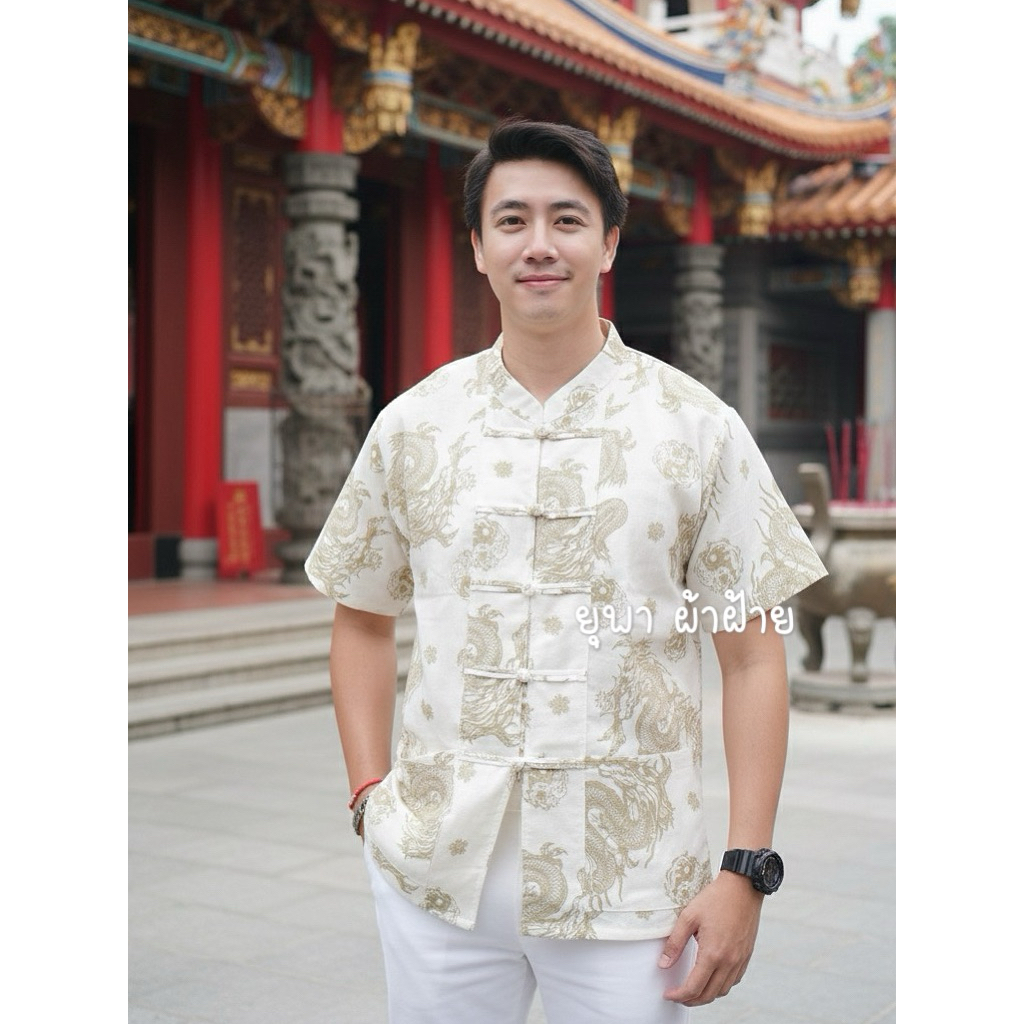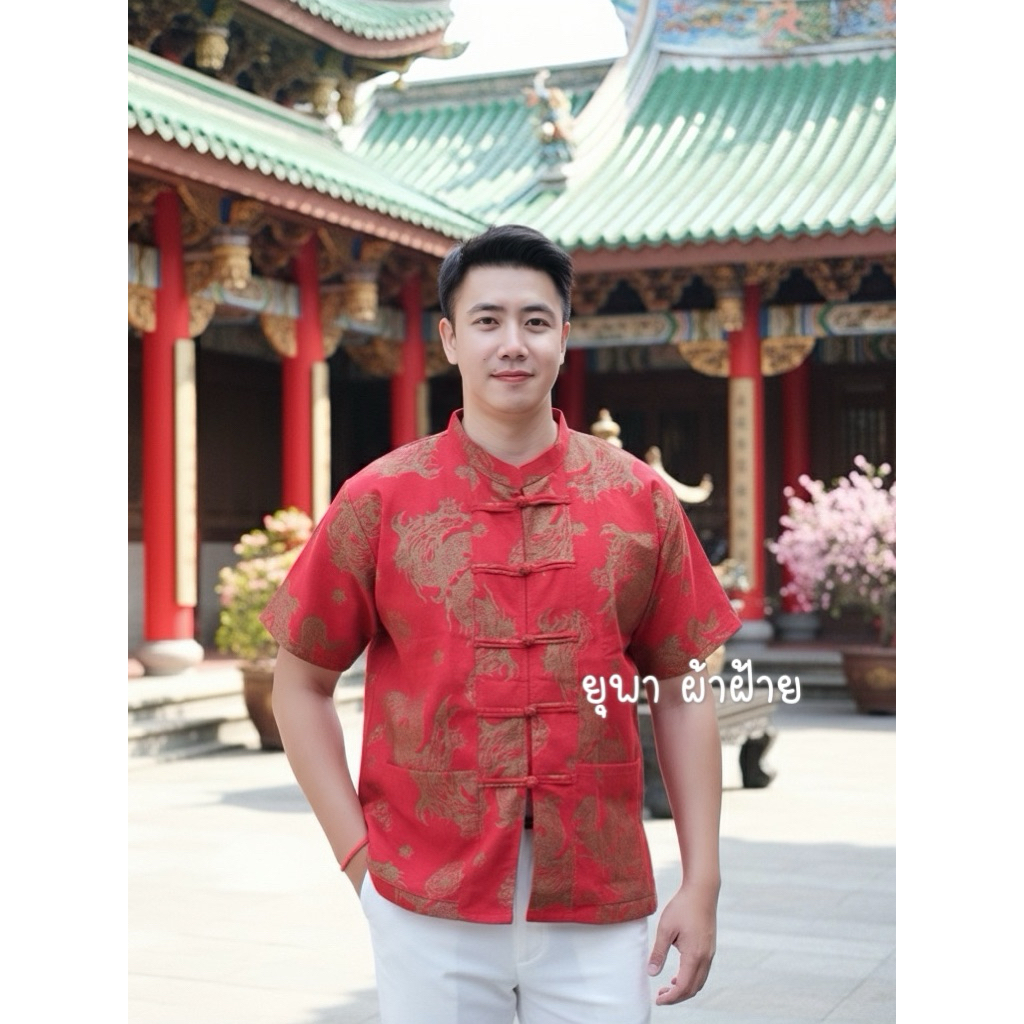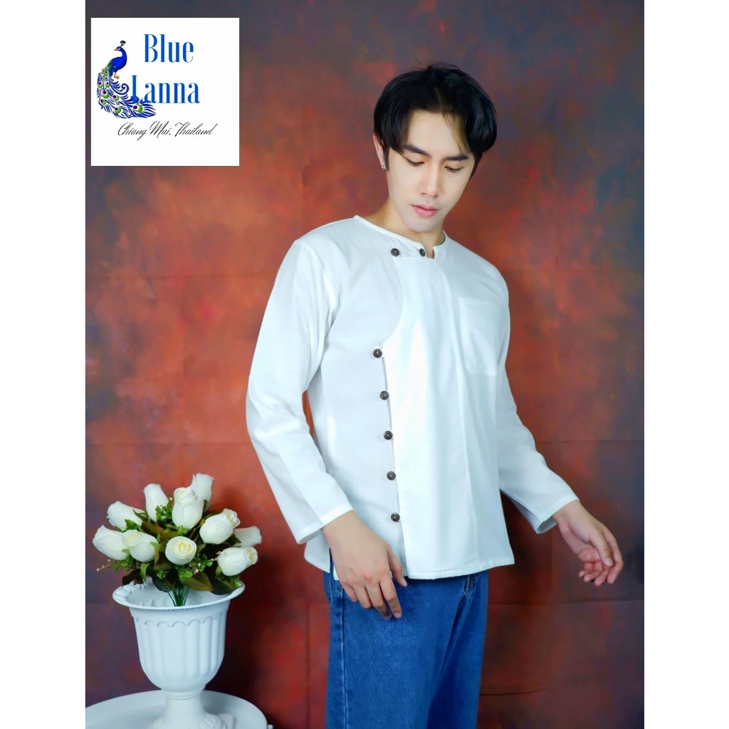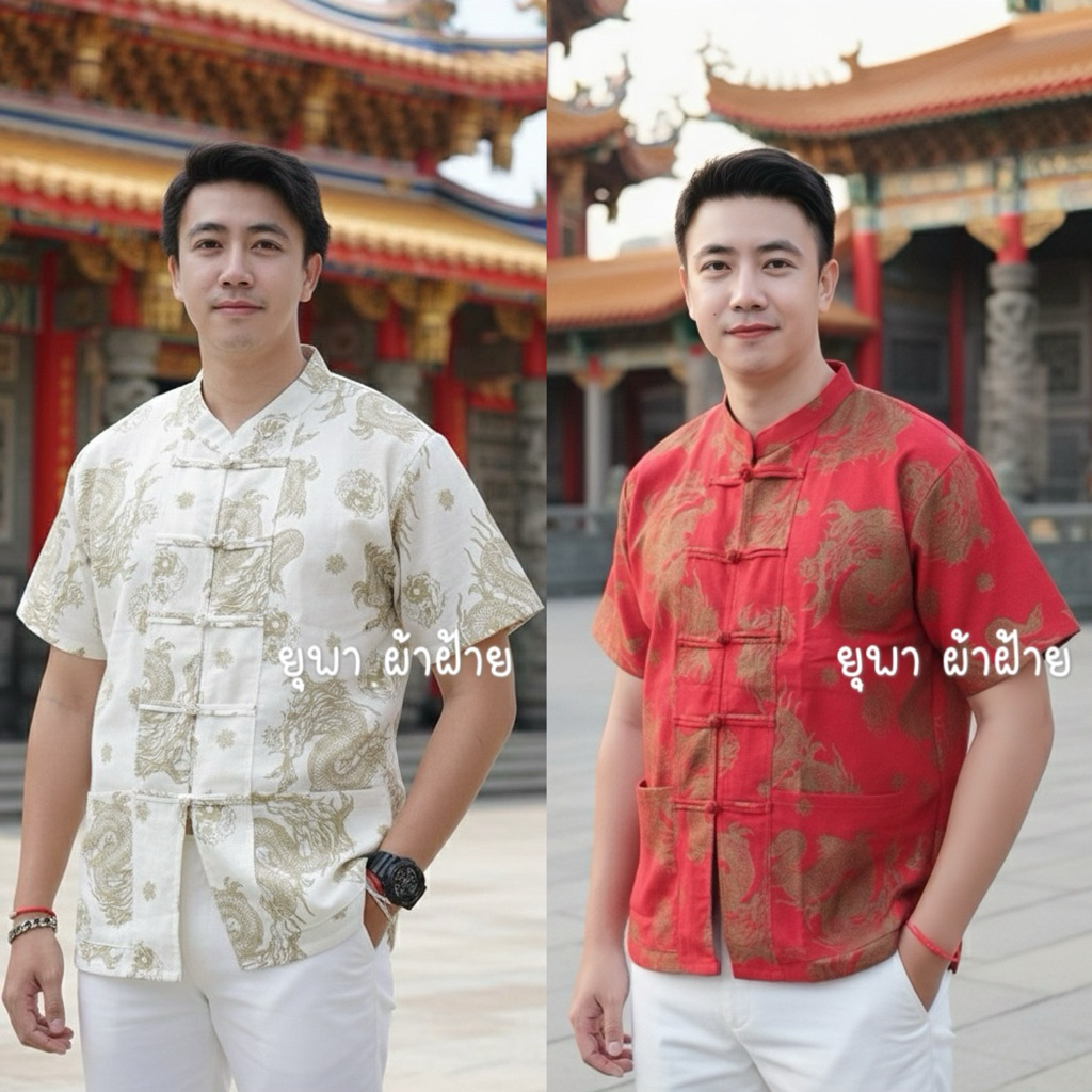 ✴เสื้อซาฟารี ผ้าไทย เสื้อผ้าไทยผู้ชาย แขนยาว คอพระราชทาน ((อัดผ้ากาว มีฟองน้ำเสริมไหล่))