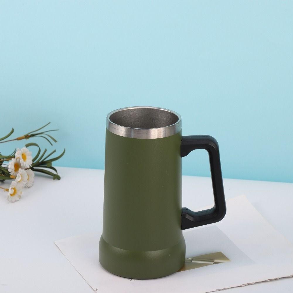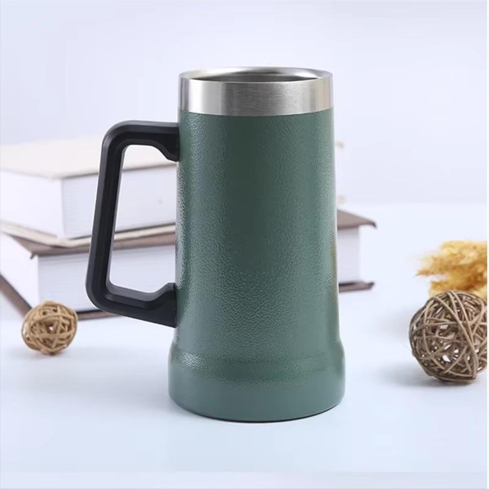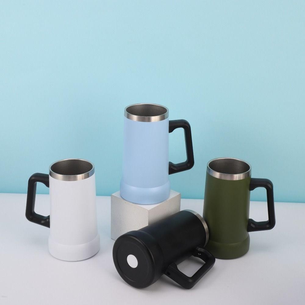 อาการบวม ถ้วยน้ําฉนวนกันความร้อนเย็น 710มล แก้วเก็บความร้อนแบบพกพาพร้อมที่จับสแตนเลสความจุขนาดใหญ่ถ้วยเบียร์