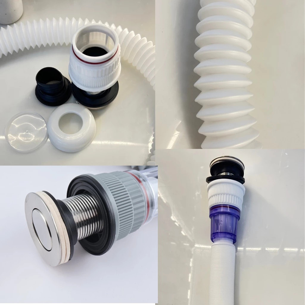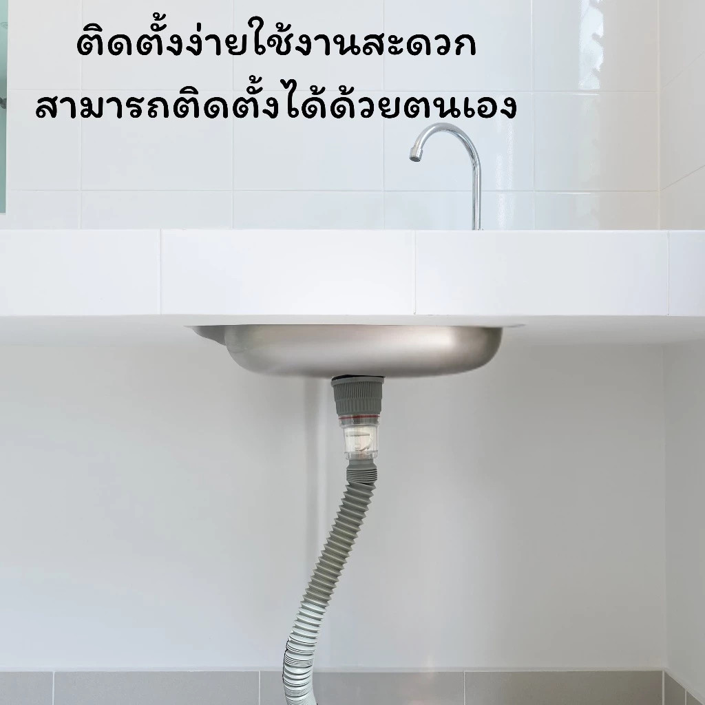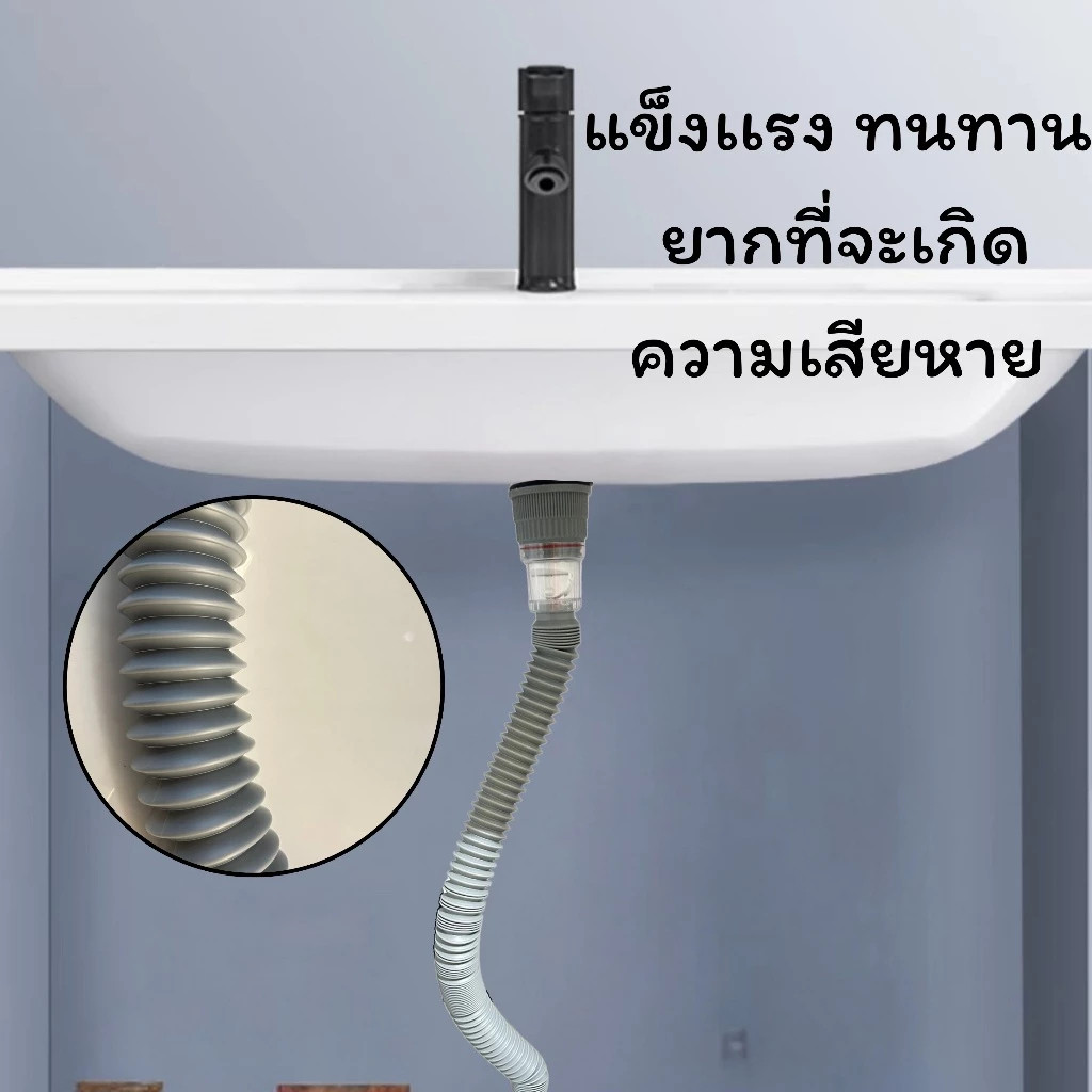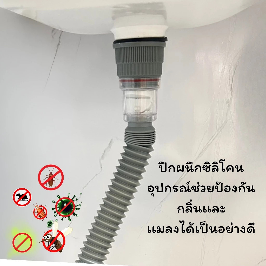LUCKY LOTUS ท่อน้ำทิ้งแบบยืดหยุ่น พลาสติก ABS ป้องกันกลิ่นและแมลง ติดตั้งง่าย สำหรับอ่างล้างหน้าและอ่างล้างจาน