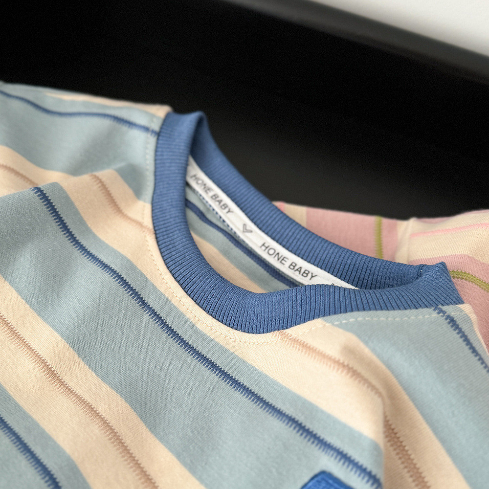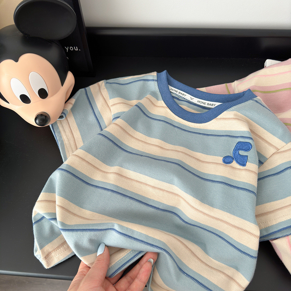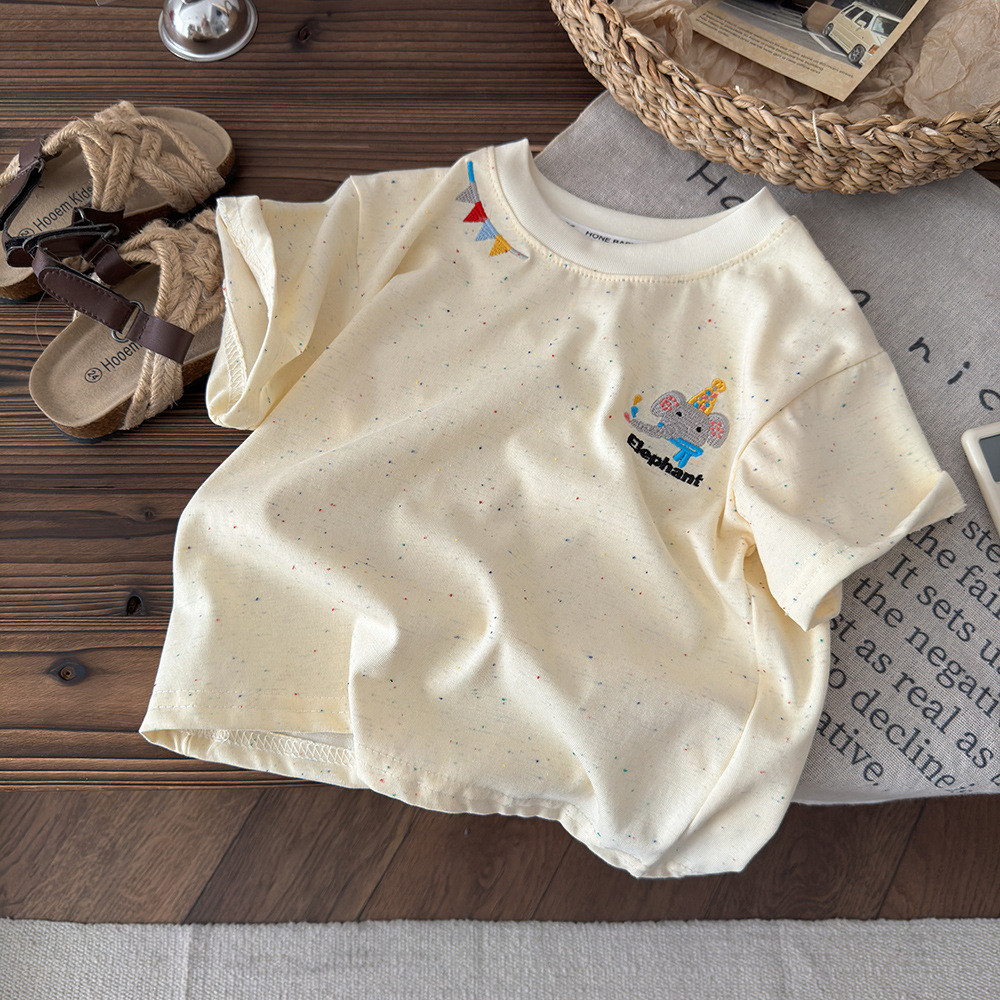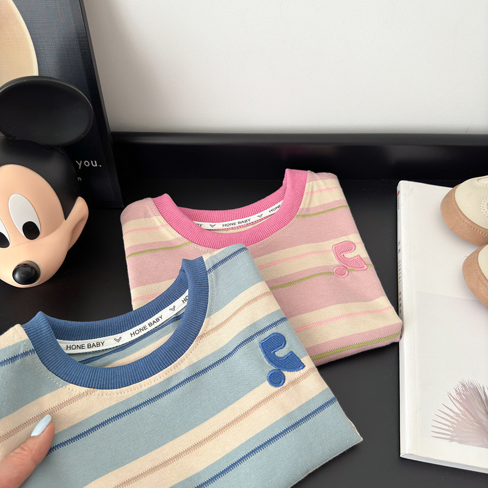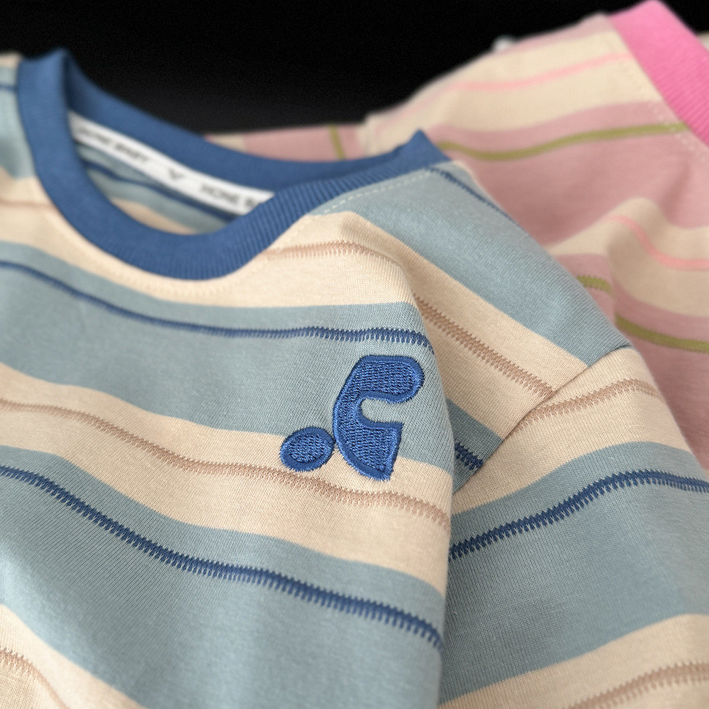 [RJ] 80-160ซม สาวฤดูร้อนสไตล์ใหม่ชายแฟชั่นแขนสั้นเสื้อยืดฤดูร้อนเด็กเสื้อผ้าปักลายฐานด้านบน