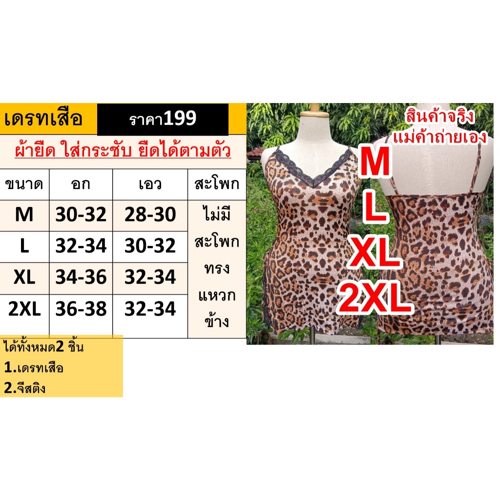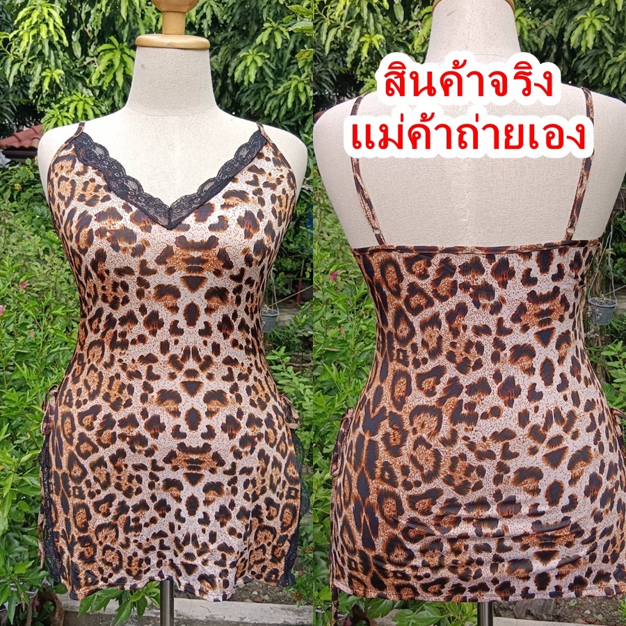 ชุดนอนสายเดี่ยว M-2XL ชุดนอนไม่ได้นอน ลายเสือ