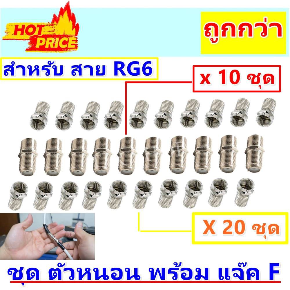 TJR ชุด ตัวต่อความยาวสายไฟ RG6 (ตัวหนอน x 10 ชิ้น พร้อม แจ็ค F x 20 ชิ้น) สำหรับ กล้องวรจรปิด ระบบทีวี
