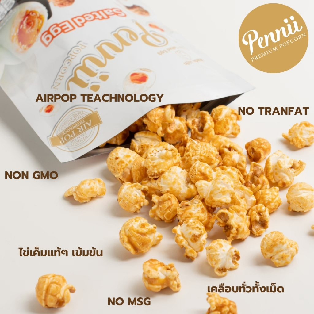 Pennii popcorn รส Salted Egg ไข่เค็ม ได้ความรู้สึกอร่อยต้องลอง ด้วยไข่เค็มคัดพิเศษเกรดส่งออกนำมาเป็นวัตถุดิบ