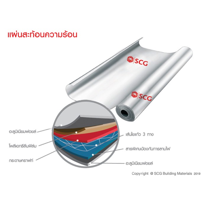 แผ่นสะท้อนความร้อน เอสซีจี ป้องกันบ้านร้อนได้ตรงจุดด้วยการสกัดร้อน สะท้อนกลับ สามารถสะท้อนรังสีความร้อนได้สูงถึง 95% และเพิ่มความแข็งแรงด้วยเส้นใยแก้ว 3 ทาง ไม่ฉีกขาดง่าย เหมาะสำหรับหลังคา เอสซีจี ทุกรุ่น