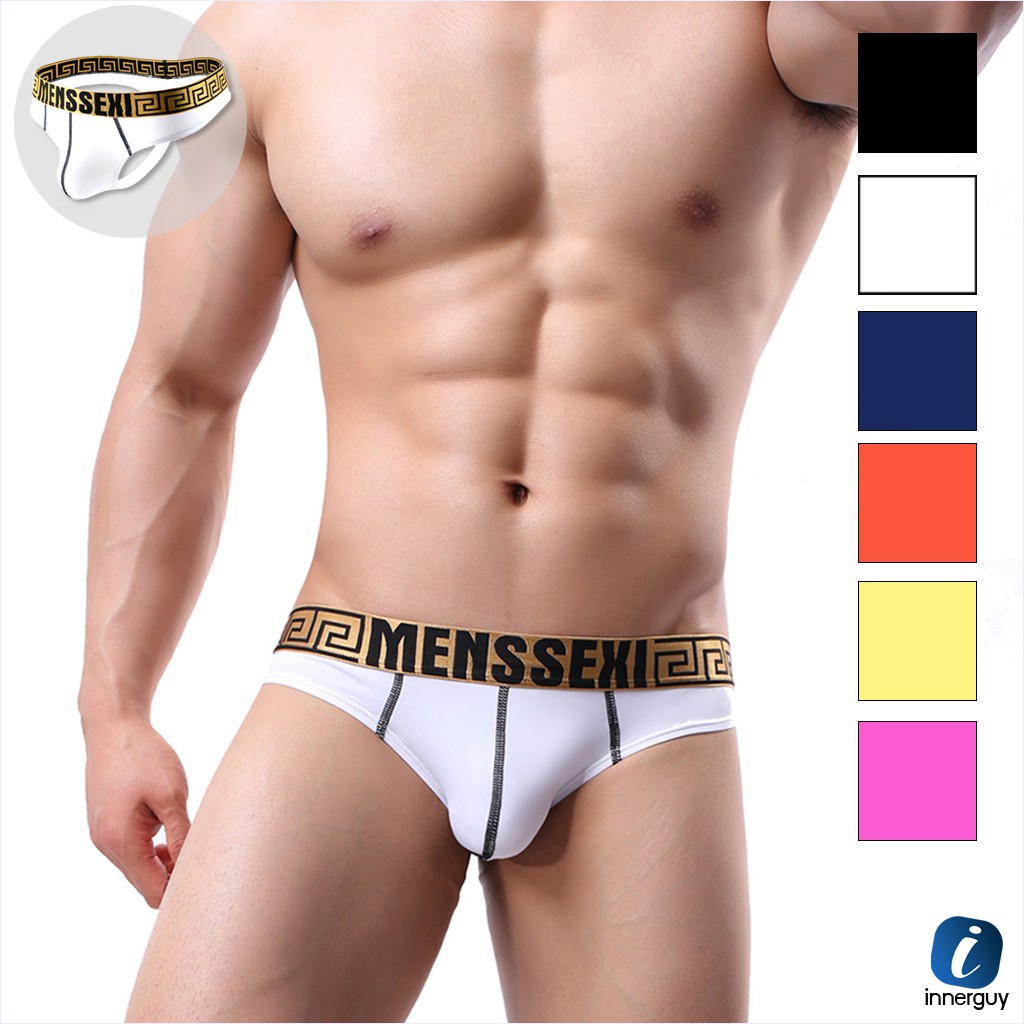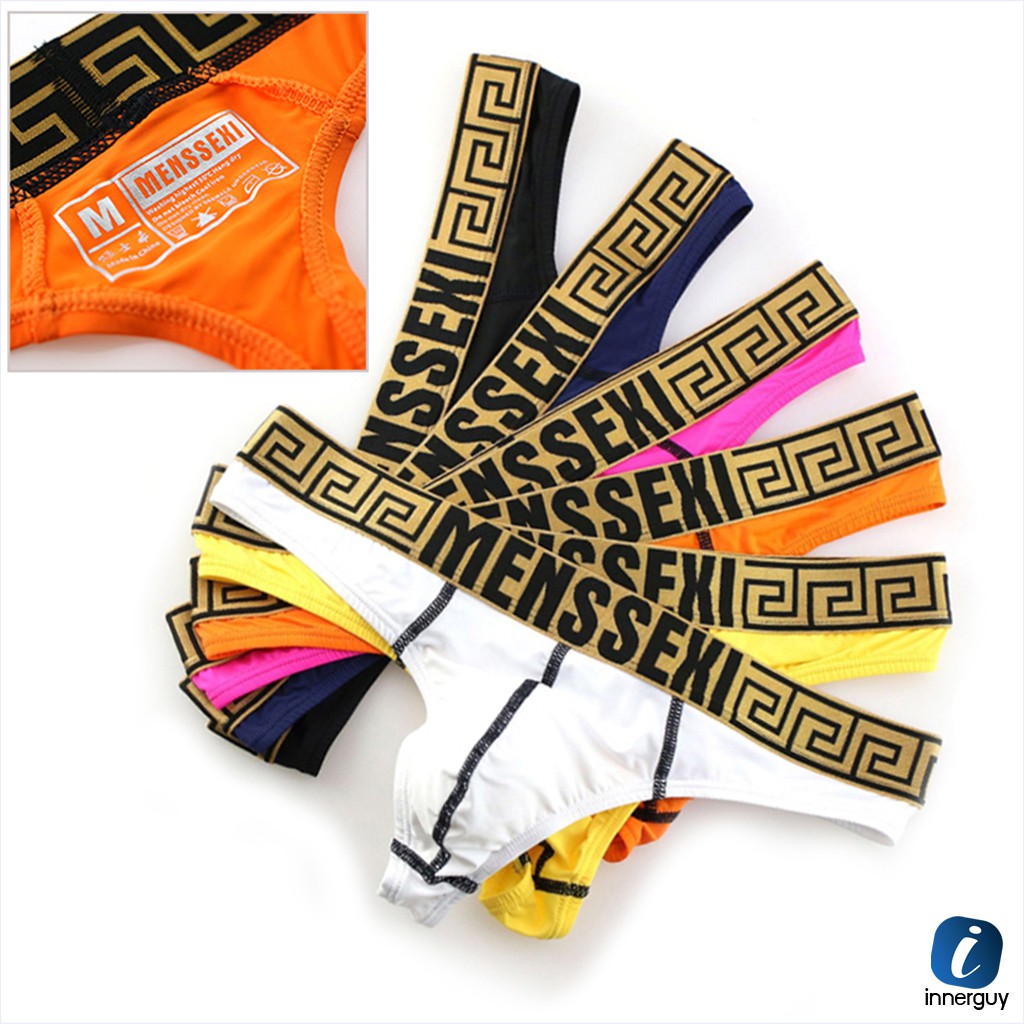 กางเกงในชายบิกินี่ MENSSEXI ขอบสีทองทอลายรอบตัว หลากสีสัน ทรง Thong เว้าด้านหลัง เปิดหลังสุดเซ็กซี่!