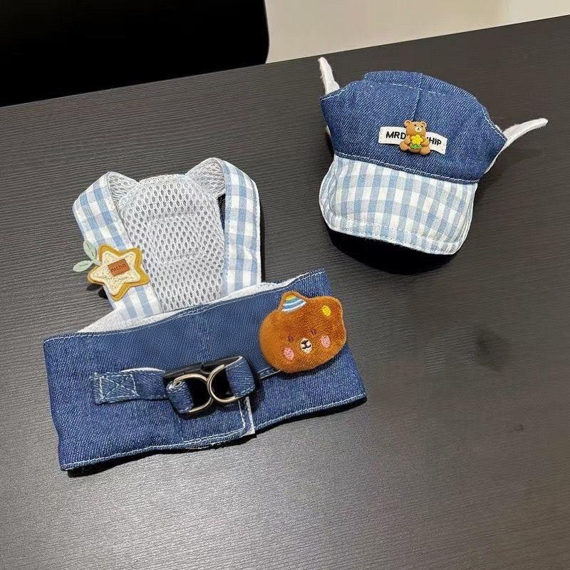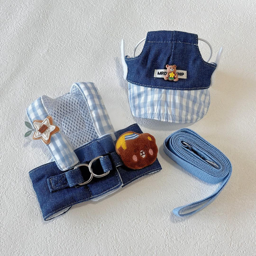 ยี่ห้อชุดยีนส์สัตว์เลี้ยง 3 ชิ้นสายรัดหมวกสายจูงสําหรับสุนัขและแมว
