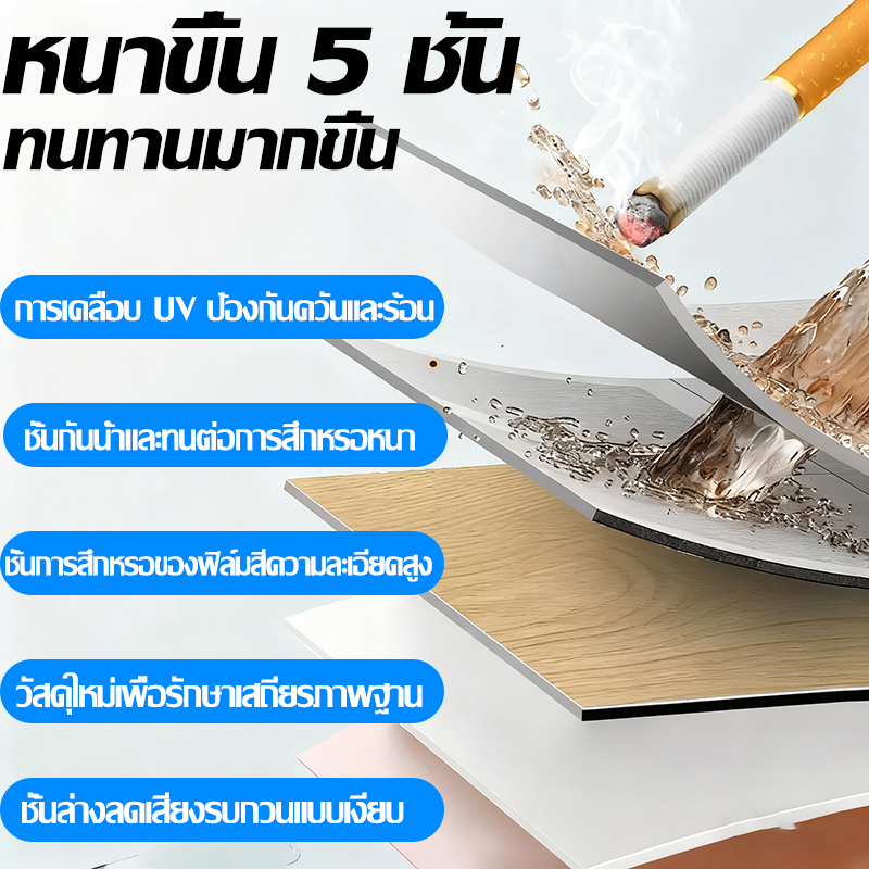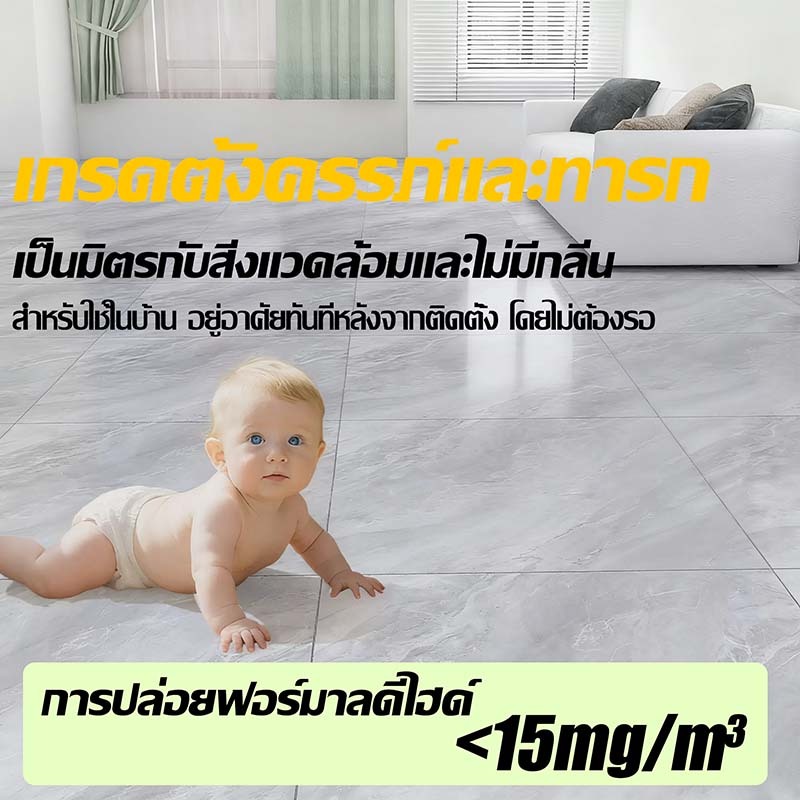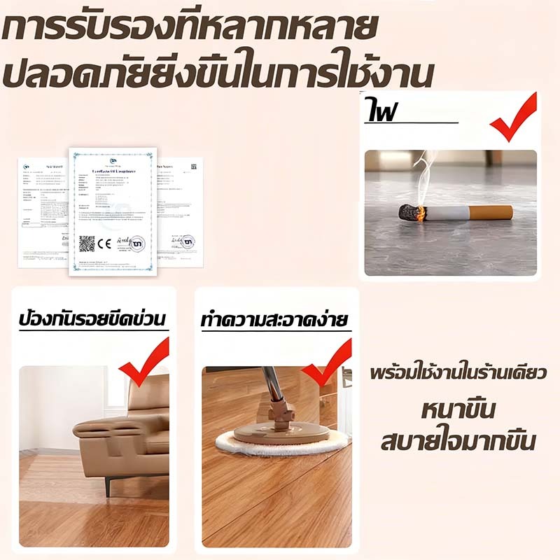 ? ดูแลรักษาและทำความสะอาดได้ง่าย ใช้ไม้ถูพื้นชุบน้ำเช็ดถูทำความสะอาด ได้ตามปกติ