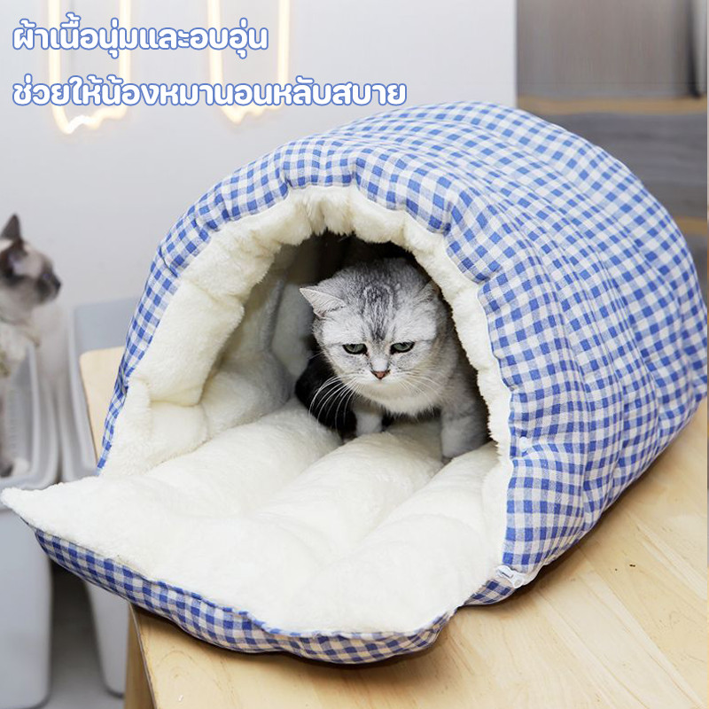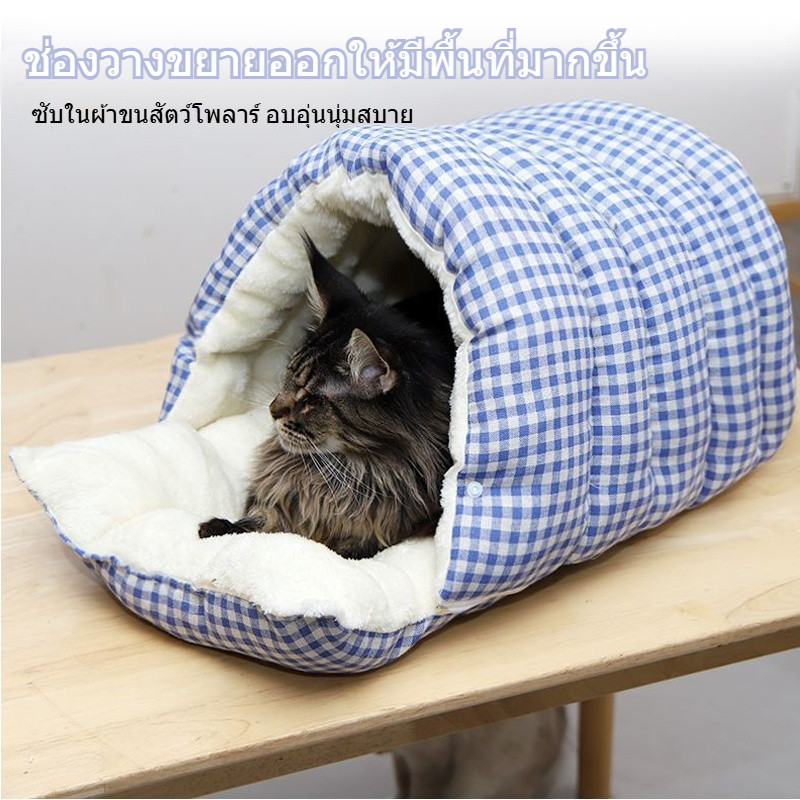 ที่นอนแมว บ้านแมว นุ่มสบายและอบอุ่น ปลอดภัยและทนทาน แบบกึ่งปิด รังแมวขนาดใหญ่ ให้ความอบอุ่น สำหรับสัตง์เลี้ยง