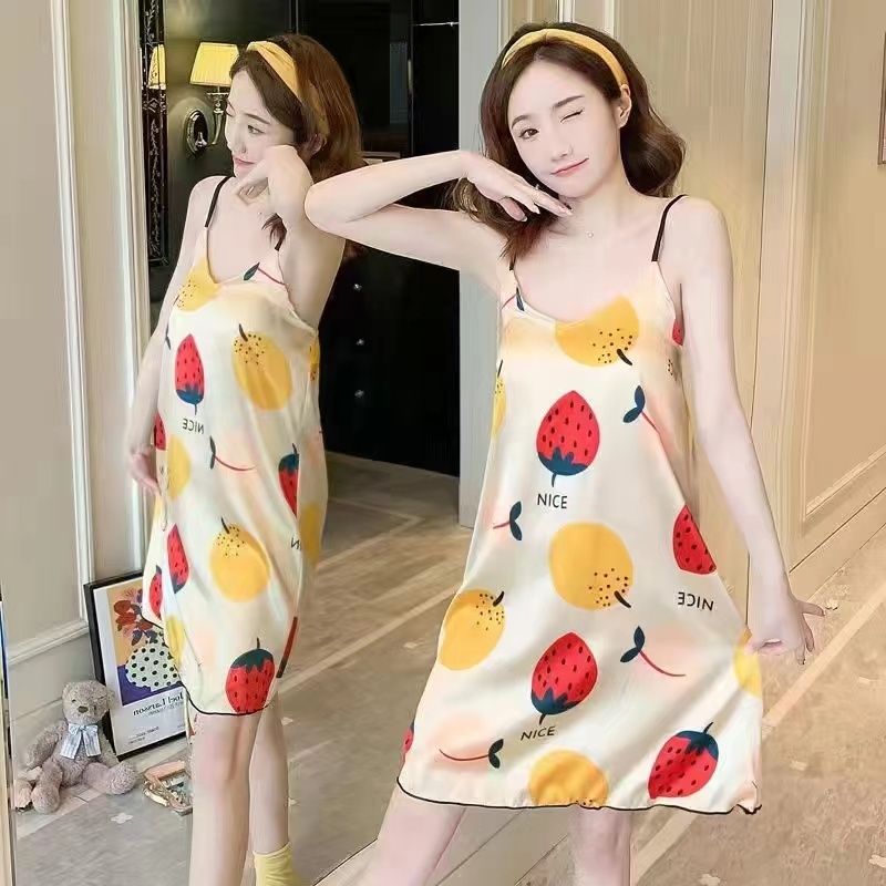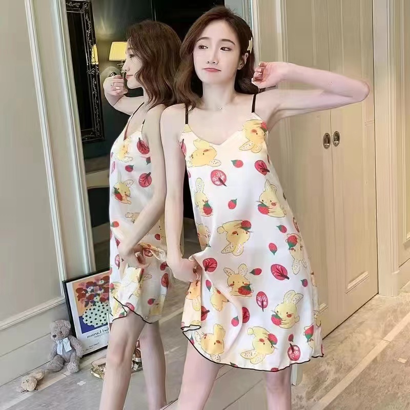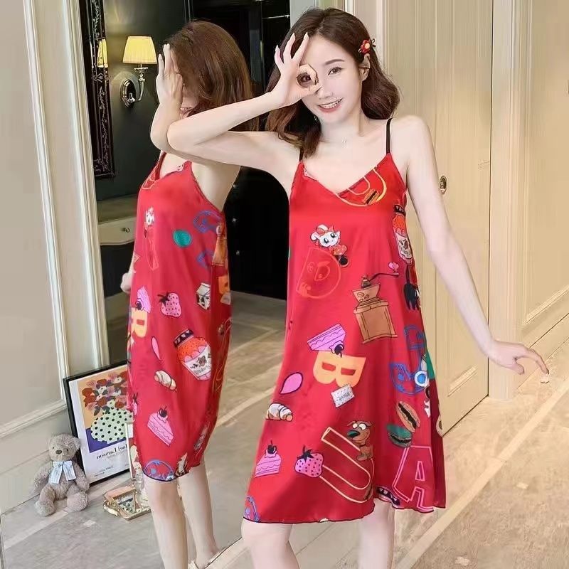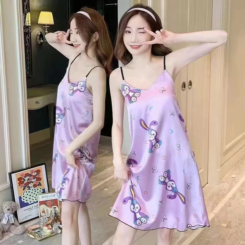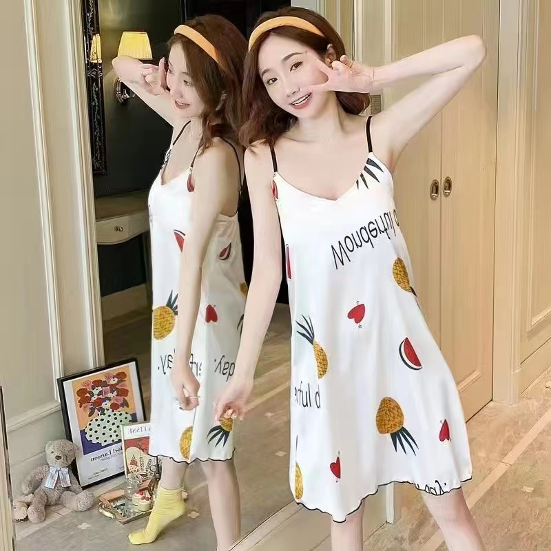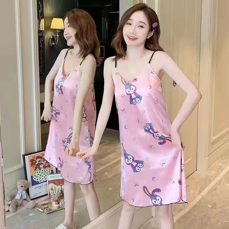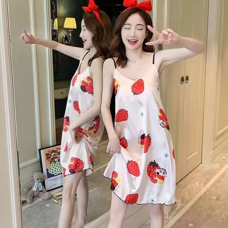 052 SPS ชุดนอนสตรี 2แบบกระโปรงและชุดนอนเสื้อ+กางเกงมาพร้อมซับในและสายที่ปรับได้ เนื้อผ้าซาตินตกแต่งลวดลายน่ารัก พร้อมส่ง