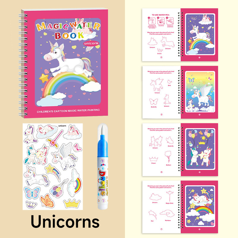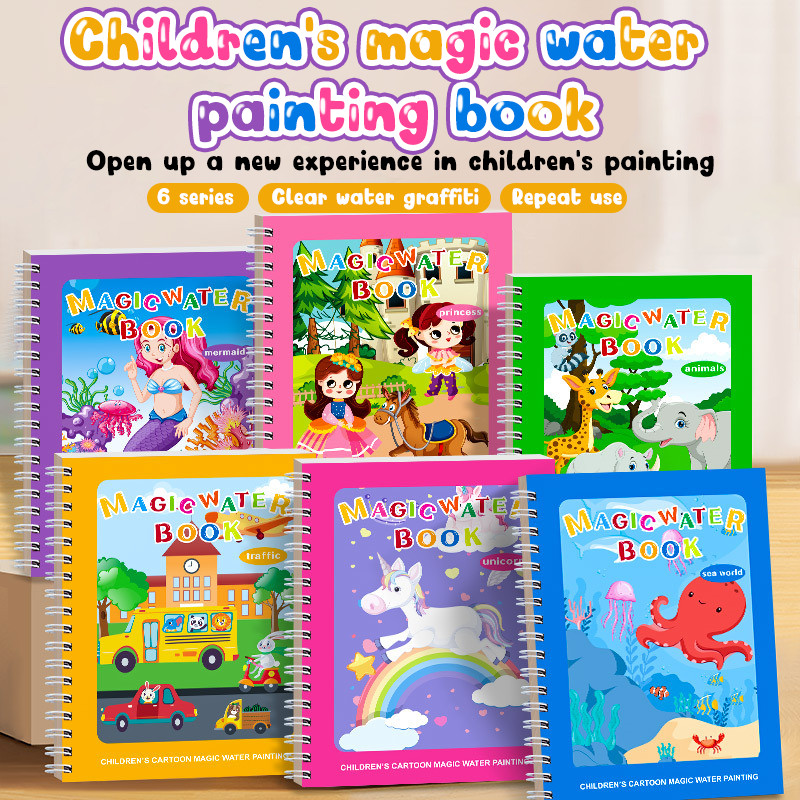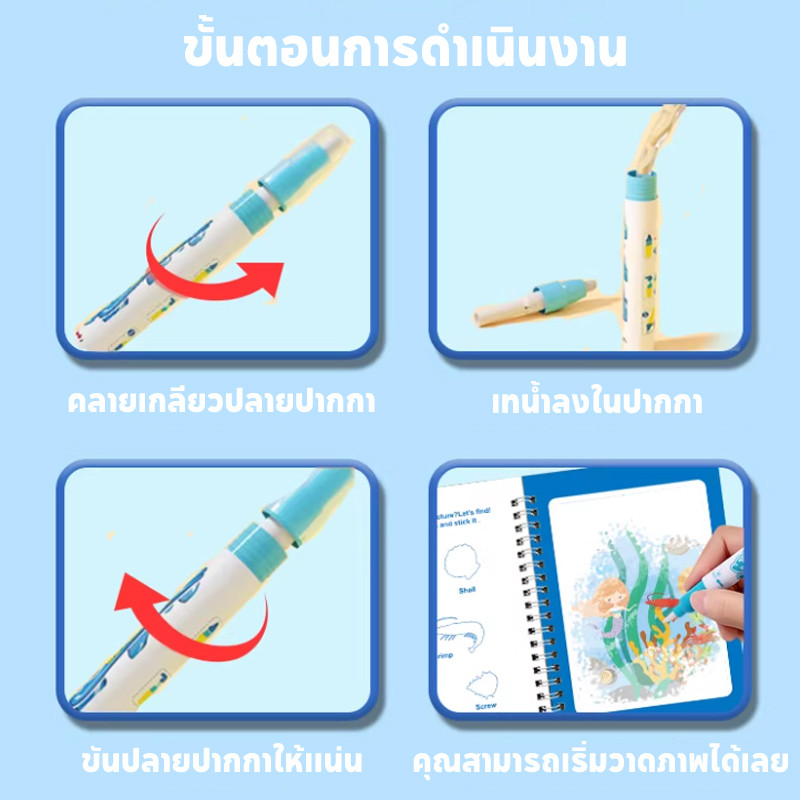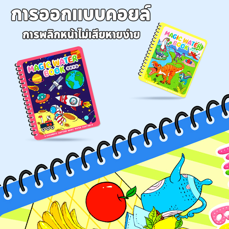 สมุดระบายสีด้วยน้ำเปล่า สมุดภาพระบายสี ระบายซ้ำได้ตลอด magic water book อุปกรณ์ระบายสี สมุดระบายน้ำ ของเล่นเด็ก