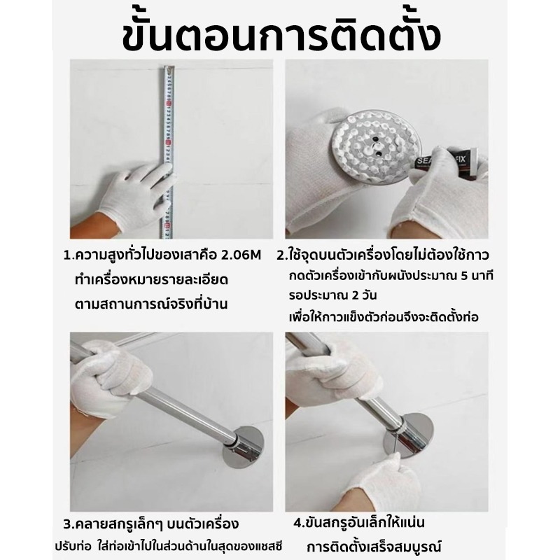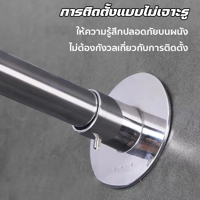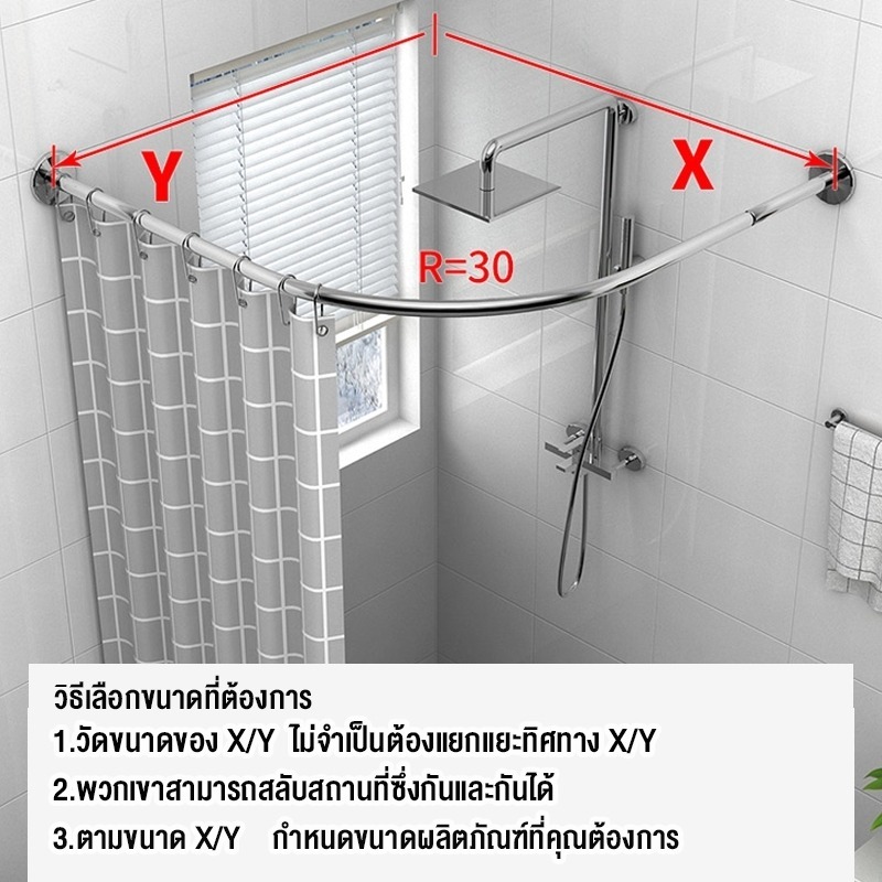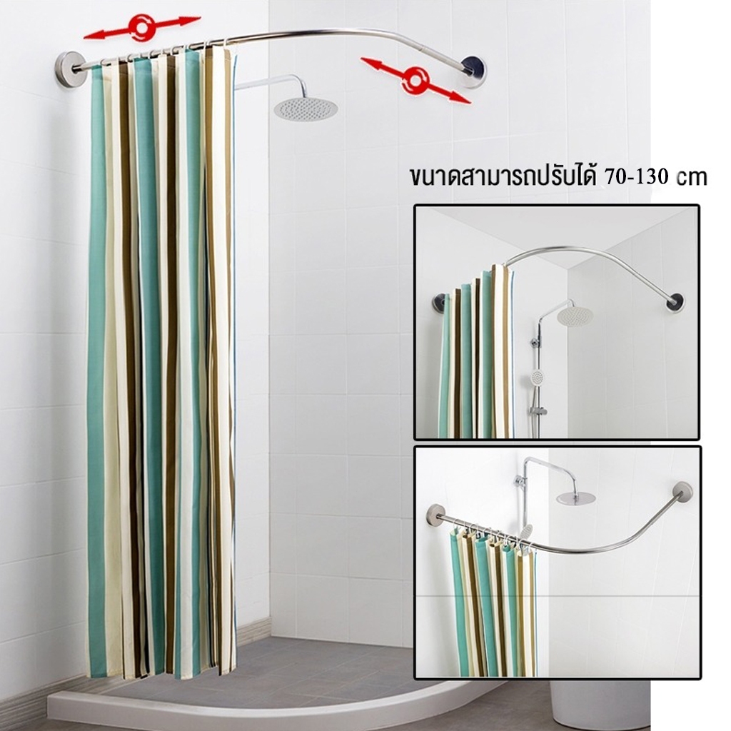 ราวแขวนม่านอาบน้ำโค้งแบบยืดหดได้ ผลิตจากสเตนเลส 304 ใช้เพื่อแยกพื้นที่เปียกและแห้งโดยไม่ต้องเจาะ
