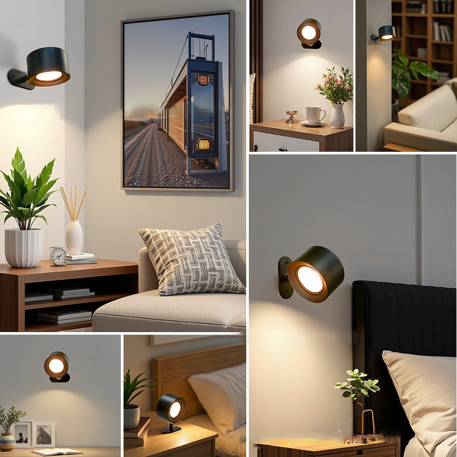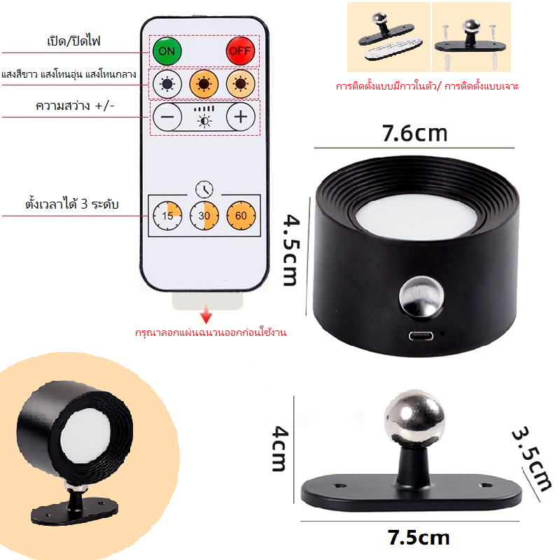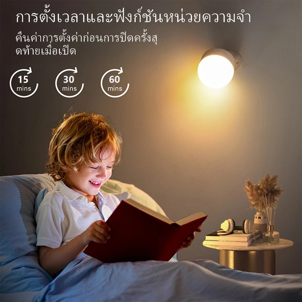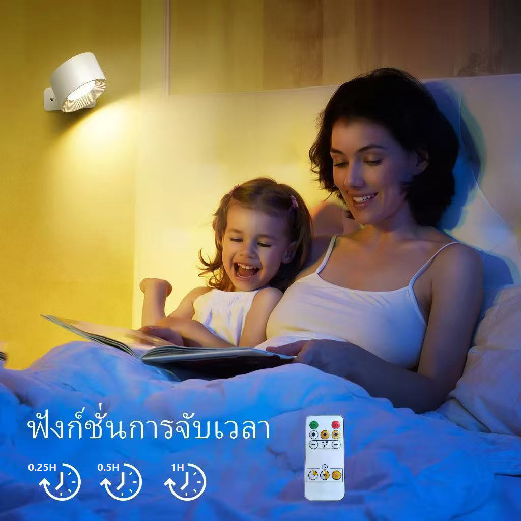 โคมไฟLEDหัวเตียง ปรับ3สี หมุนได้360 ไฟกลางคืนติดผนัง ชาร์จUSB พร้อมรีโมต สําหรับอ่านหนังสือ