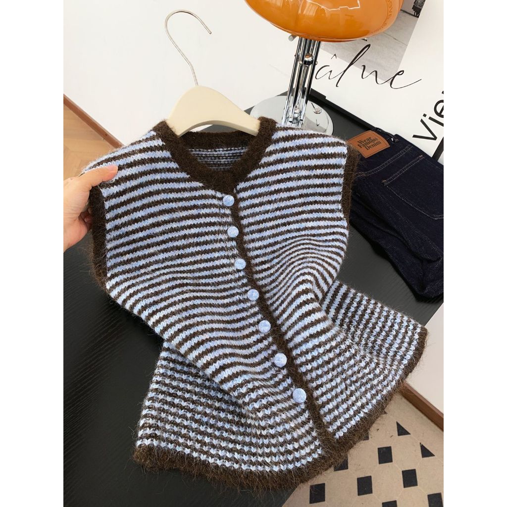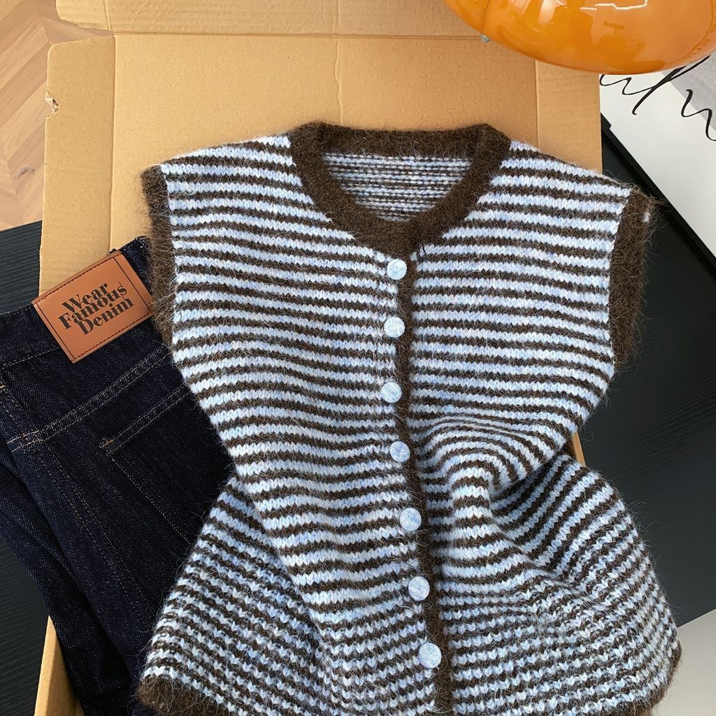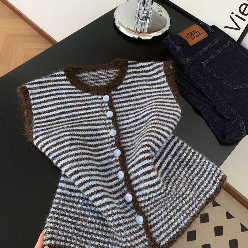 เสื้อกั๊กลายถักสไตล์เกาหลีสีดำและเทา สำหรับผู้หญิง สวมใส่ง่ายในซีซั่นใบไม้ร่วง