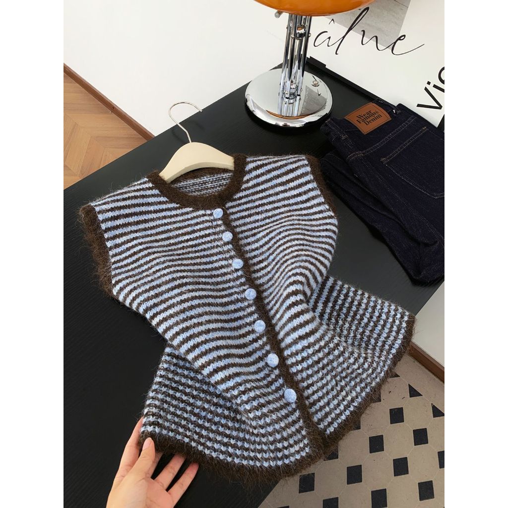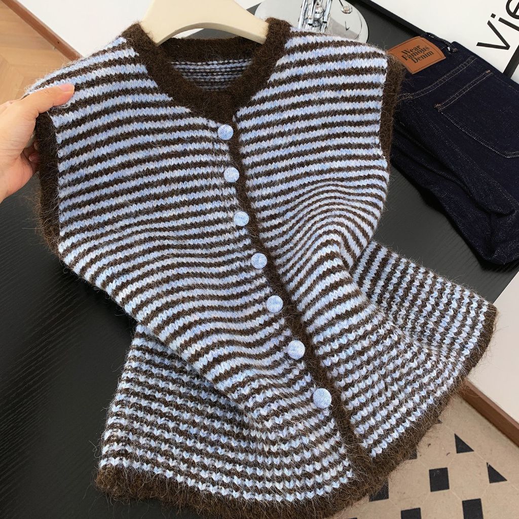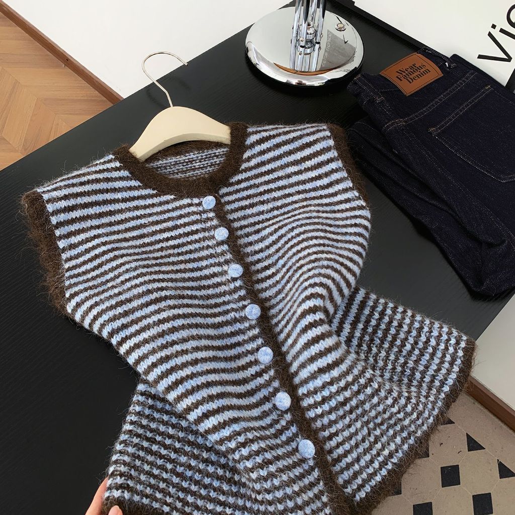 เสื้อกั๊กลายถักสไตล์เกาหลีสีดำและเทา สำหรับผู้หญิง สวมใส่ง่ายในซีซั่นใบไม้ร่วง