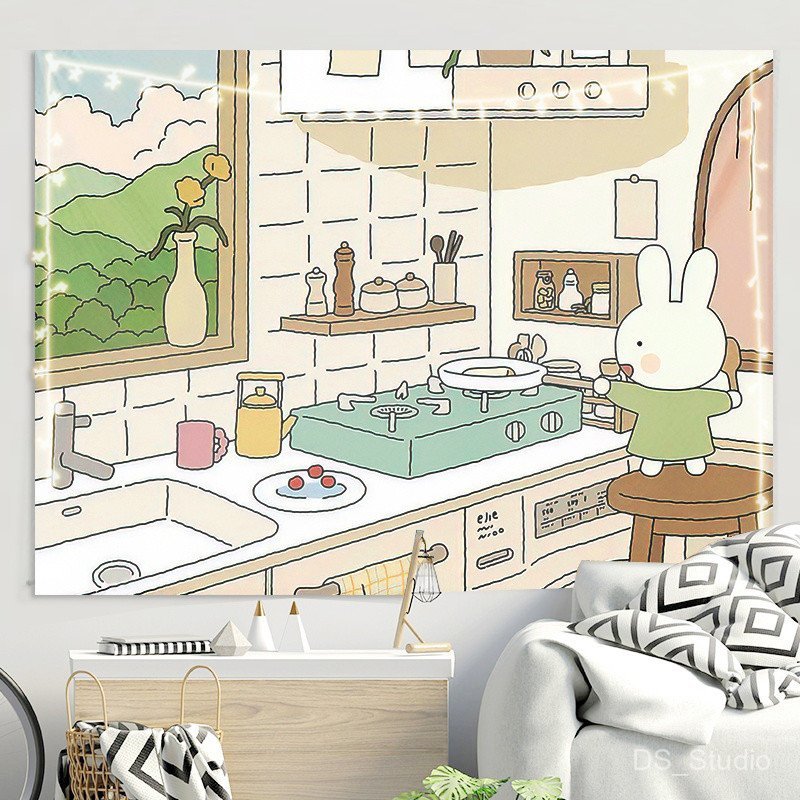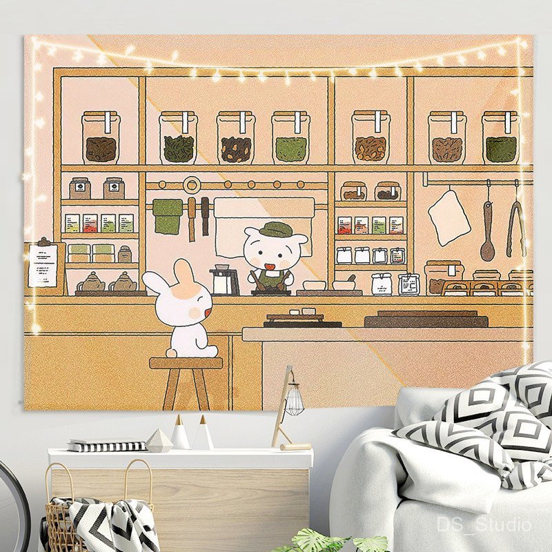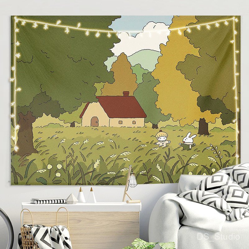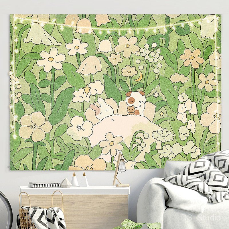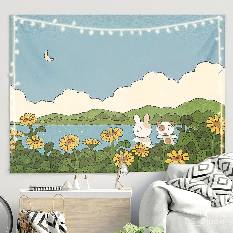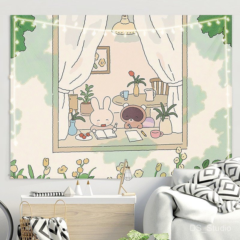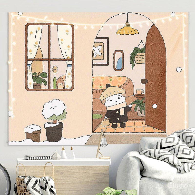 ผ้าแขวนสไตล์การ์ตูนสดใหม่ Agirl น่ารัก ผ้าพื้นหลัง ผ้าตกแต่งห้องนอน ผ้าปรับปรุงบ้าน ผ้าผนัง