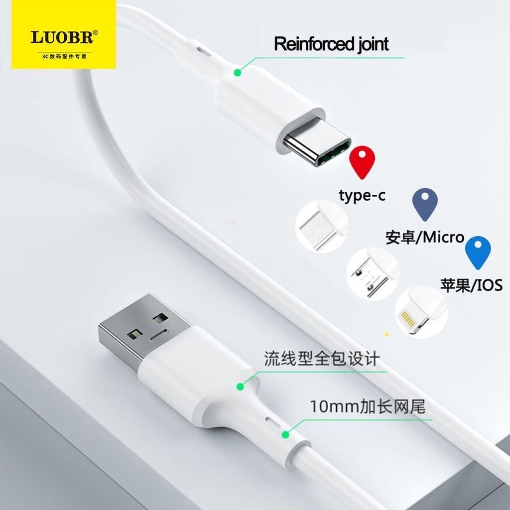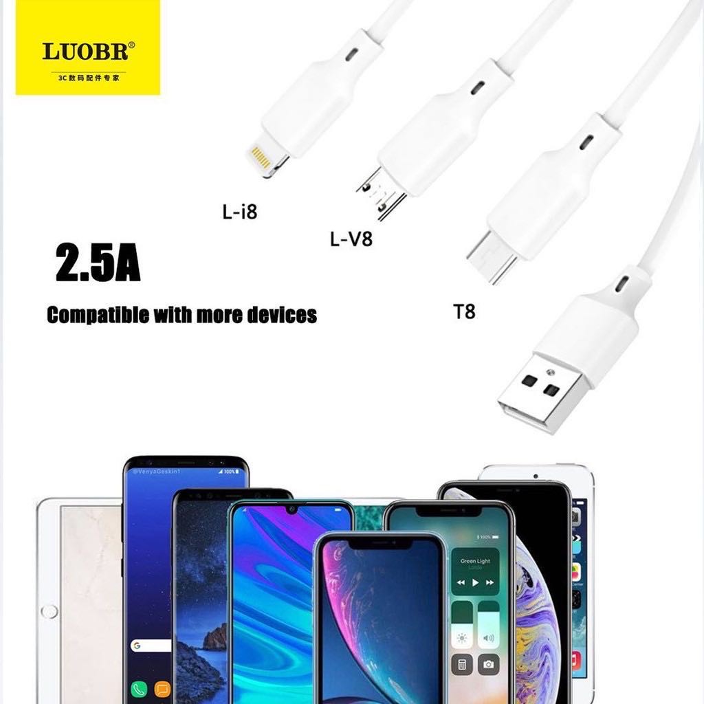 สายชาร์จ LUOBR L-V8 Fast Charge 2.5A มี 3 หัวให้เลือก Micro USB Type-C 1000MM
