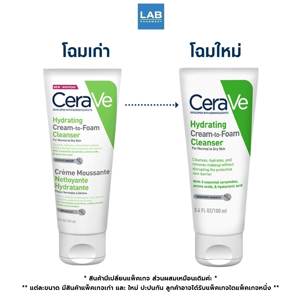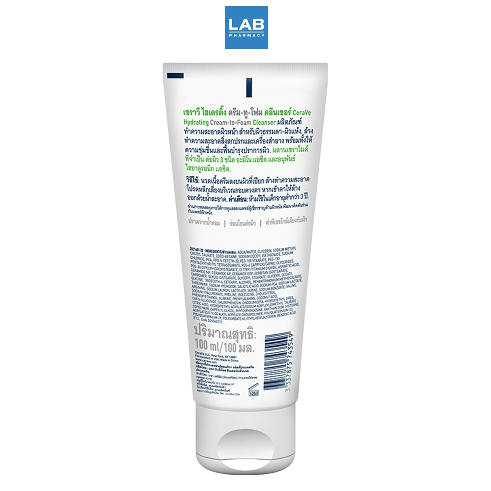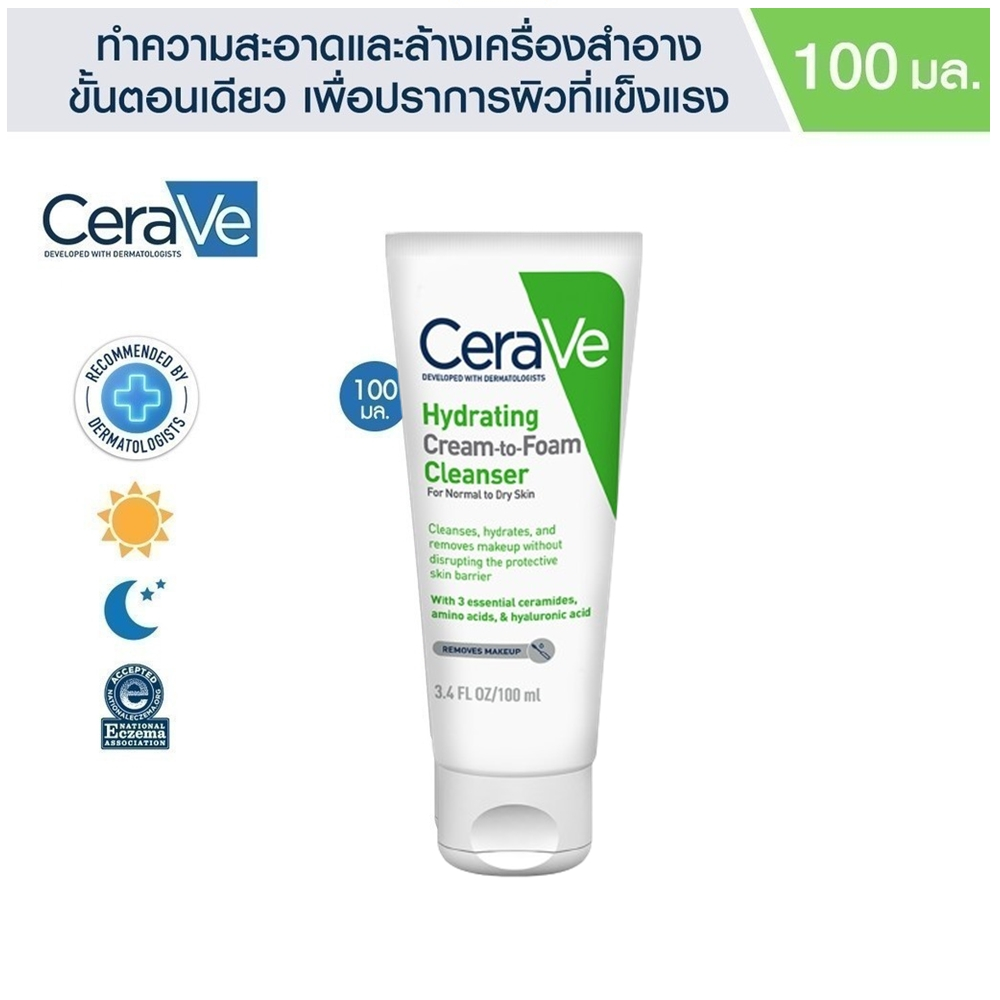 เซราวี ไฮเดรติ้ง ครีม-ทู-โฟม คลีนเซอร์ ผลิตภัณฑ์ทำความสะอาดและล้างเครื่องสำอางบนผิวหน้าในขั้นตอนเดียว เพื่อผิวสะอาด ชุ่มชื้น ไม่แห้งตึง 1 ขวด บรรจุ 100 มิลลิลิตร