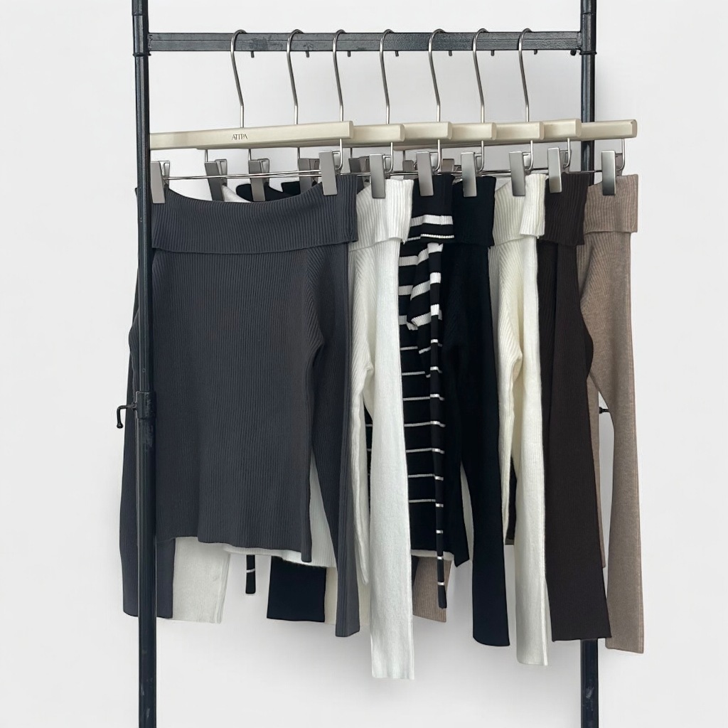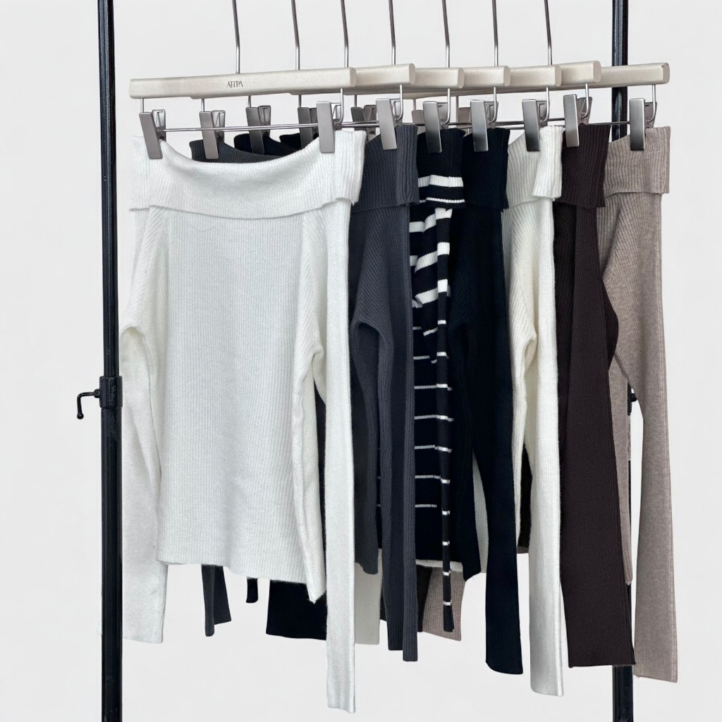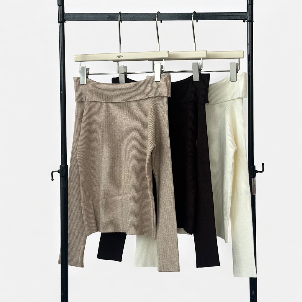 Atipashop – VELIN KNIT TOP เสื้อปาดไหล่แขนยาว ผ้าไหมพรม มีหลายสี