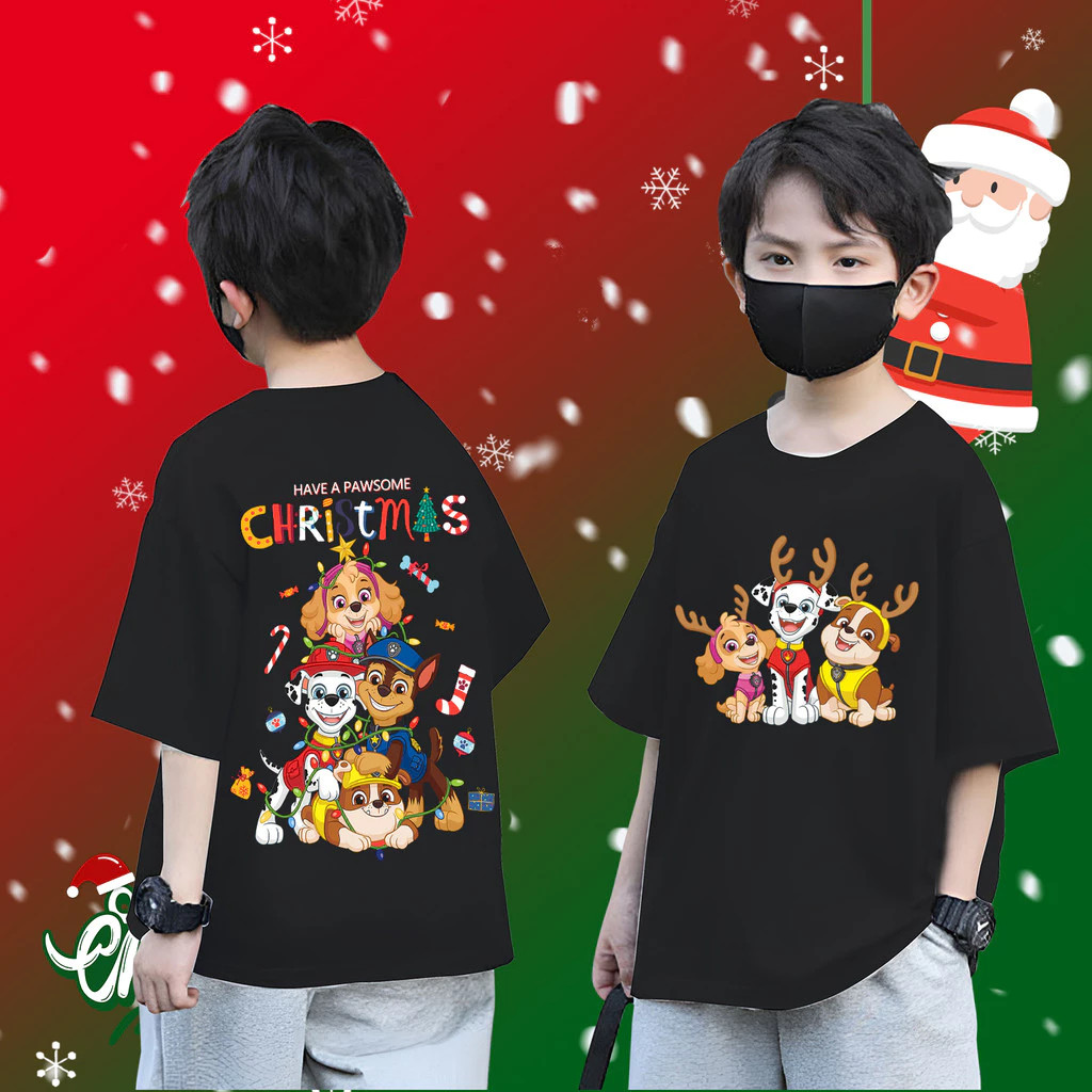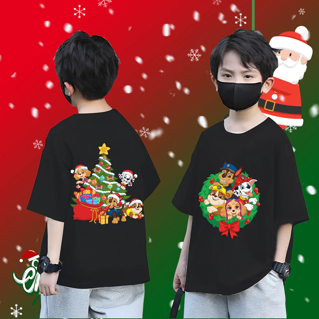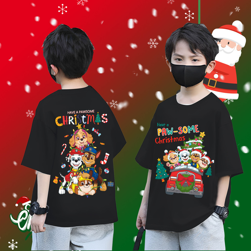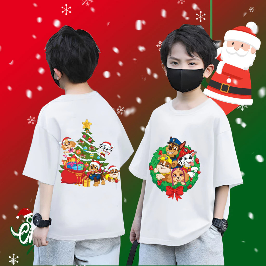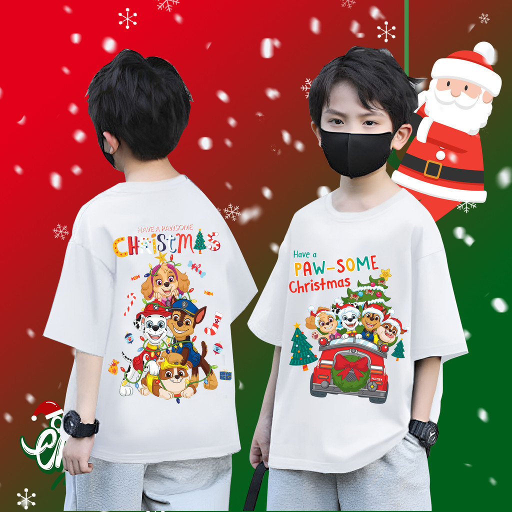 (จัดส่งตลอด 24 ชั่วโมง) Cute PAW Patrol & Christmas เสื้อยืดเด็ก