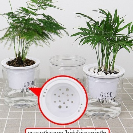 กระถางต้นไม้แบบใส เก็บน้ำได้ รดน้ำอัตโนมัติ กระถาง2ชั้น จำนวน 1 ใบ