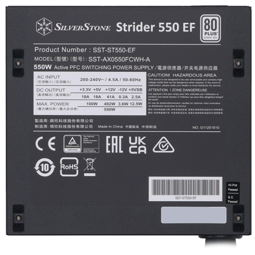 POWER SUPPLY (อุปกรณ์จ่ายไฟ) SILVERSTONE STRIDER 550 EF – 550W 80 PLUS BLACK ATX ของแท้ศูนย์ไทย