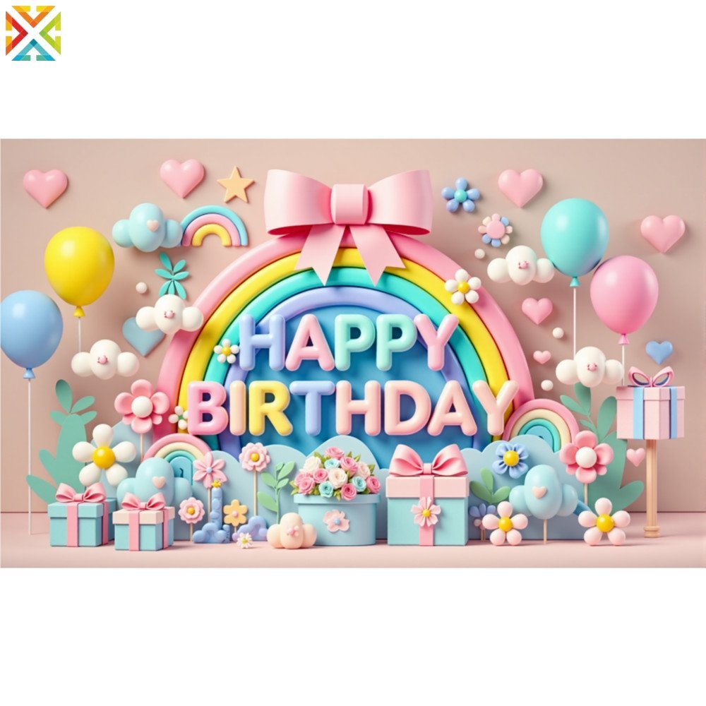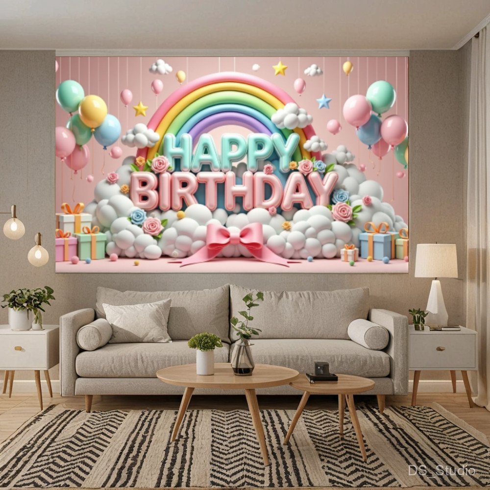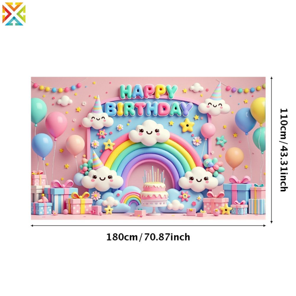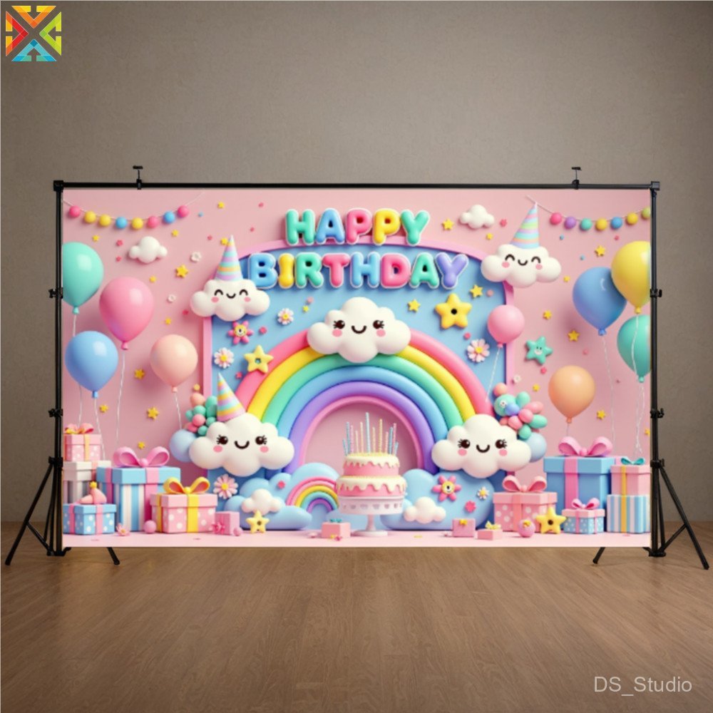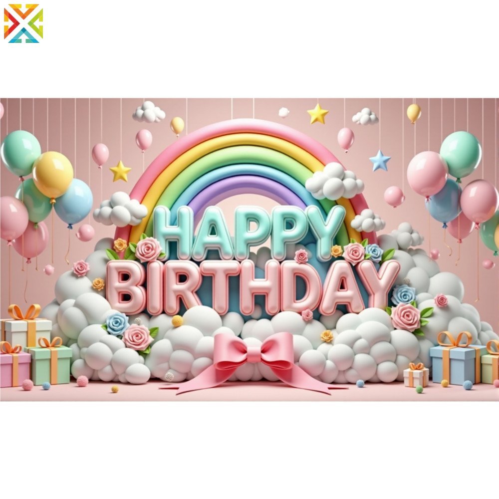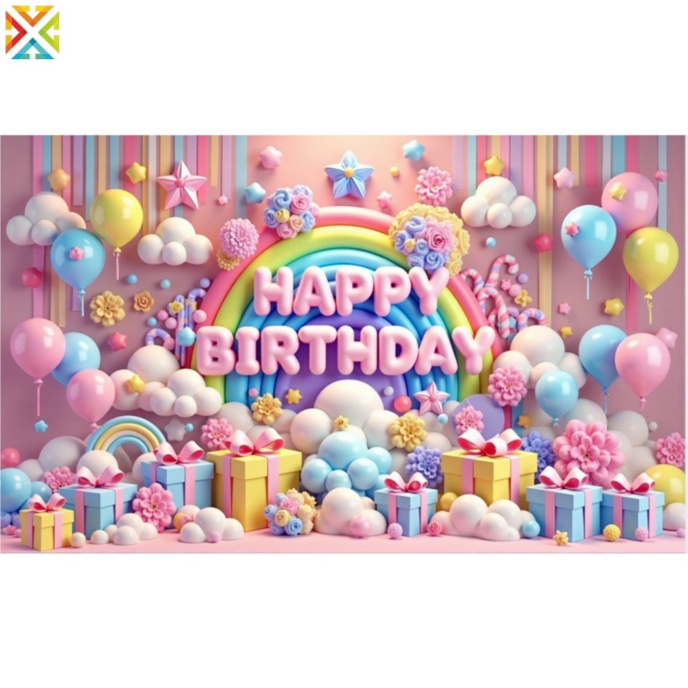 สุขสันต์วันเกิดพื้นหลังแบนเนอร์บอลลูนที่มีสีสันสายรุ้งเมฆเด็กเด็กงานเลี้ยงวันเกิดตกแต่งพื้นหลังผนังฉลองอุปกรณ์ถ่ายภาพ