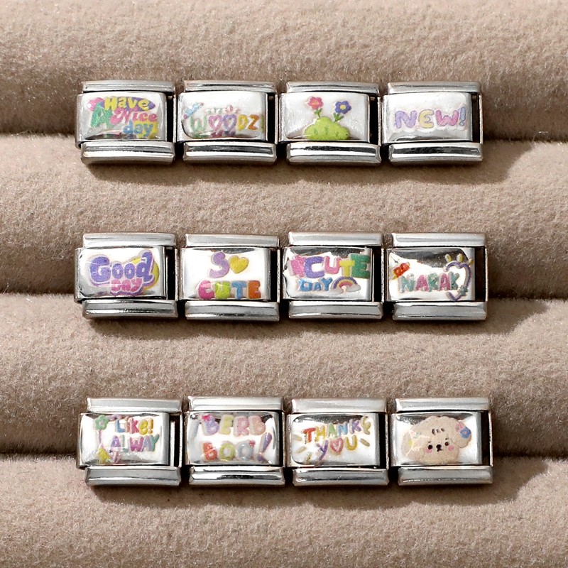สร้อยข้อมือสแตนเลสขนาด 9 มิลลิเมตร ออกแบบโดยใช้ข้อความอิตาลี สร้อยข้อมือสไตล์ย้อนยุค
