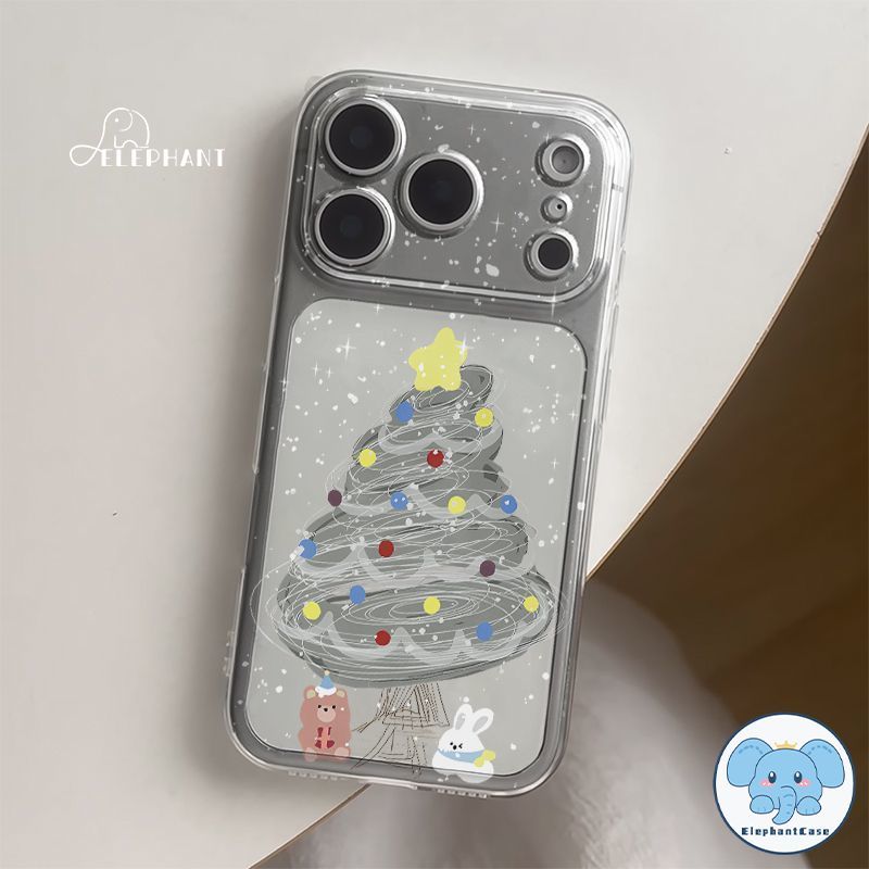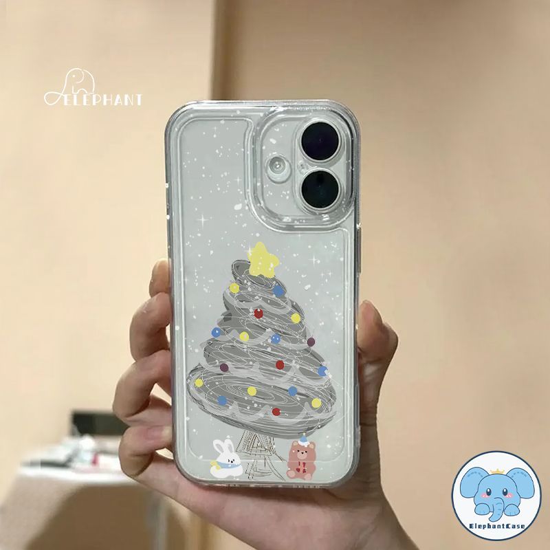 สำหรับIPhone 17 15 16 13 11 air 12 14 Pro Max XR XS Max 7 16 15 8 Plus SEกระต่ายน่ารักหมีต้นคริสต์มาสคู่ซิลิโคนฝาครอบใส