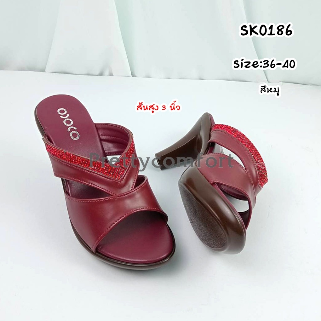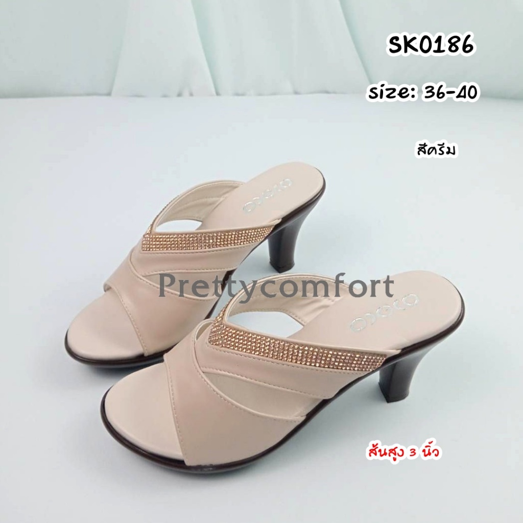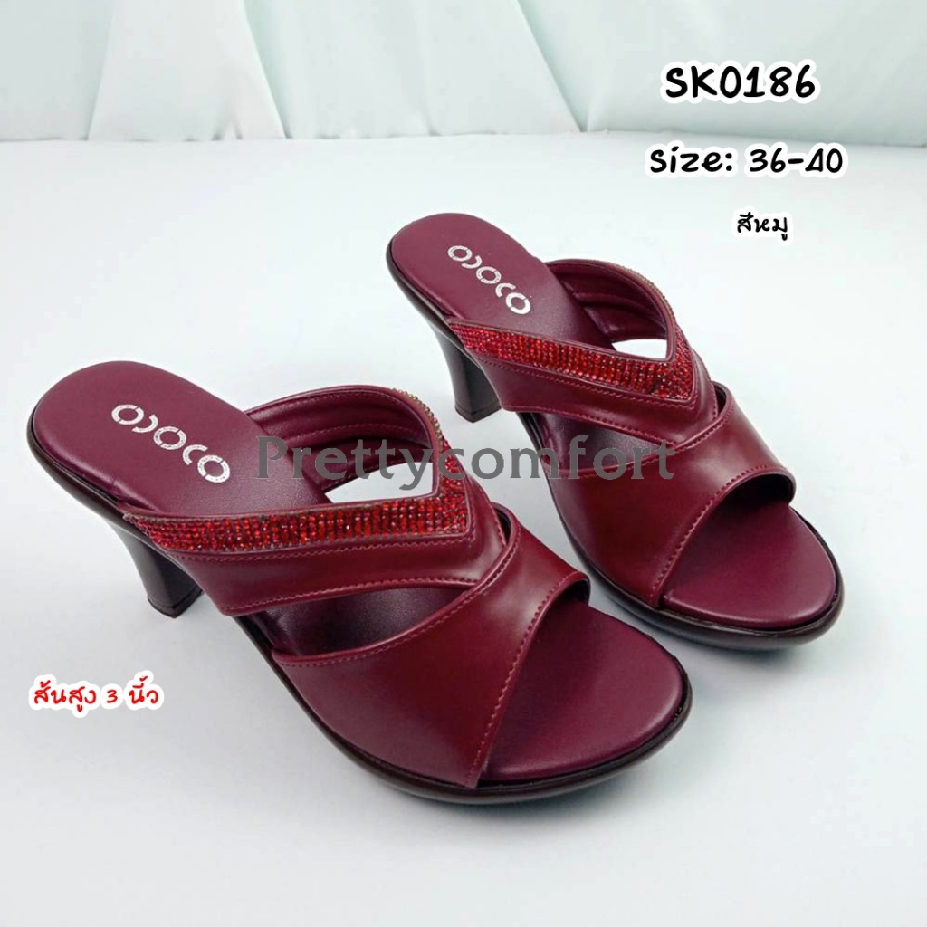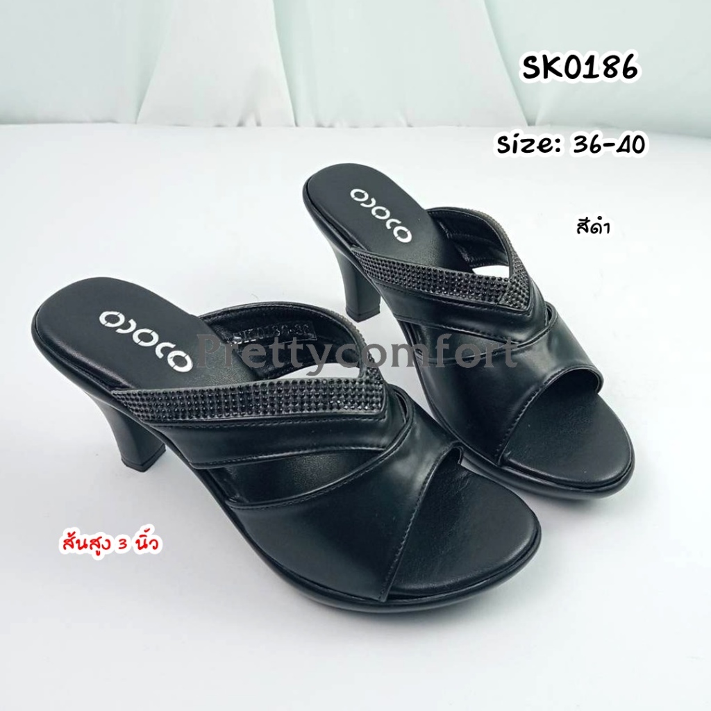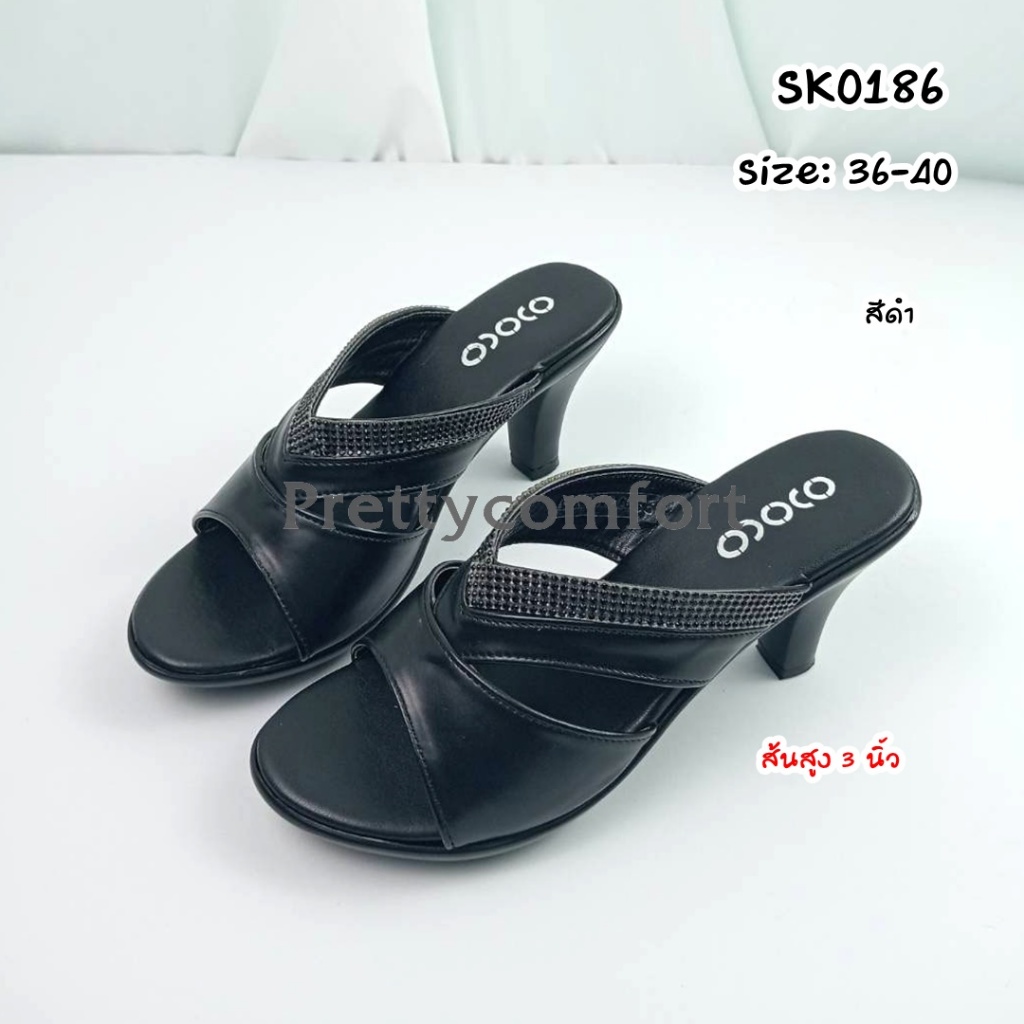 prettycomfort รองเท้าแตะเพื่อสุขภาพ รองเท้าแฟชั่น หน้าสวม ส้นส้นสูง3นี้ว ทำด้วยหนังพียู นิ่มใส่สบาย น้ำหนักเบา SK0186