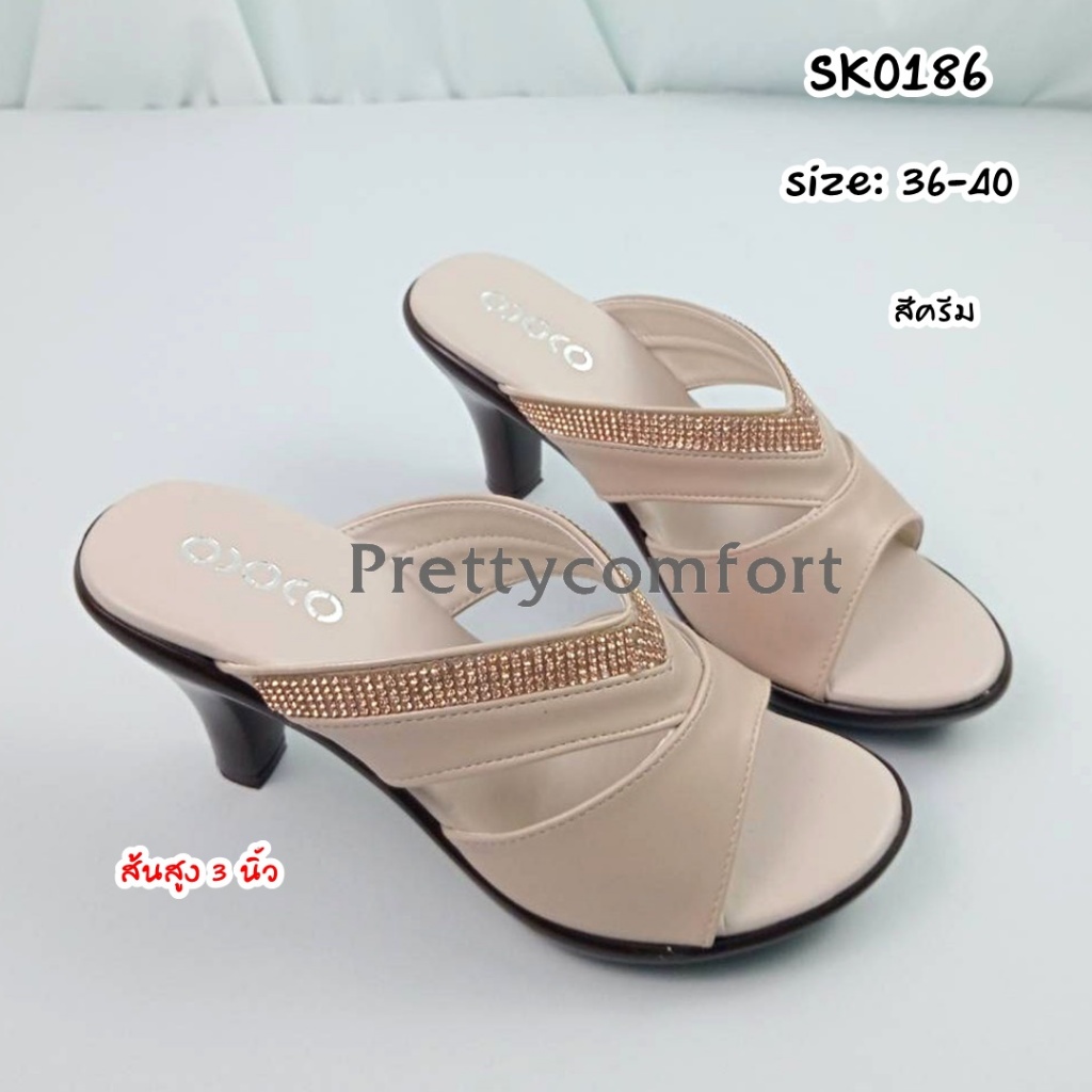 Prettycomfort รองเท้าแตะเพื่อสุขภาพ รองเท้าแฟชั่น ส้นส้นสูง3นี้ว นิ่มใส่สบาย น้ำหนักเบา SK0186