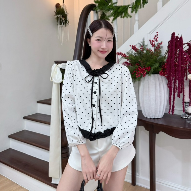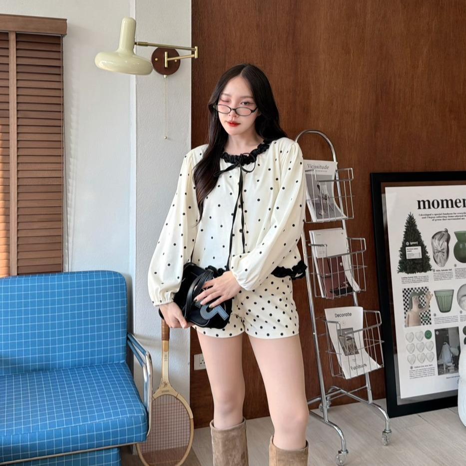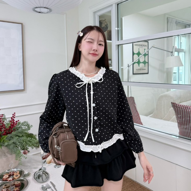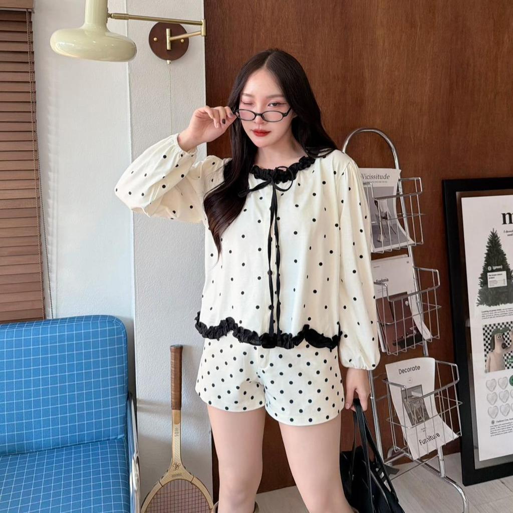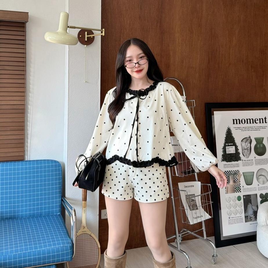KN.Clothes เสื้อแขนยาว คอระบาย แต่งโบว์ กระดุมหน้า เนื้อผ้าคอตตอน Cookies Bear
