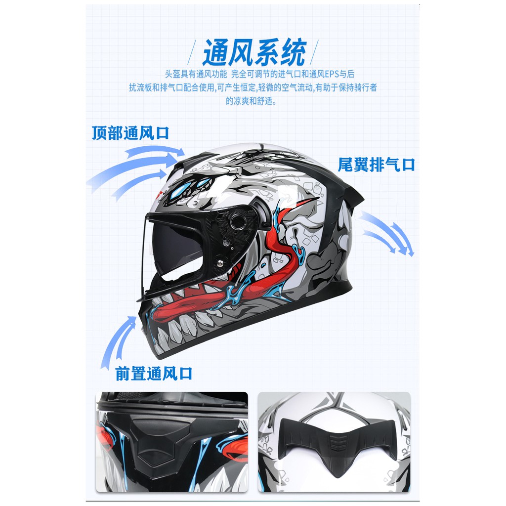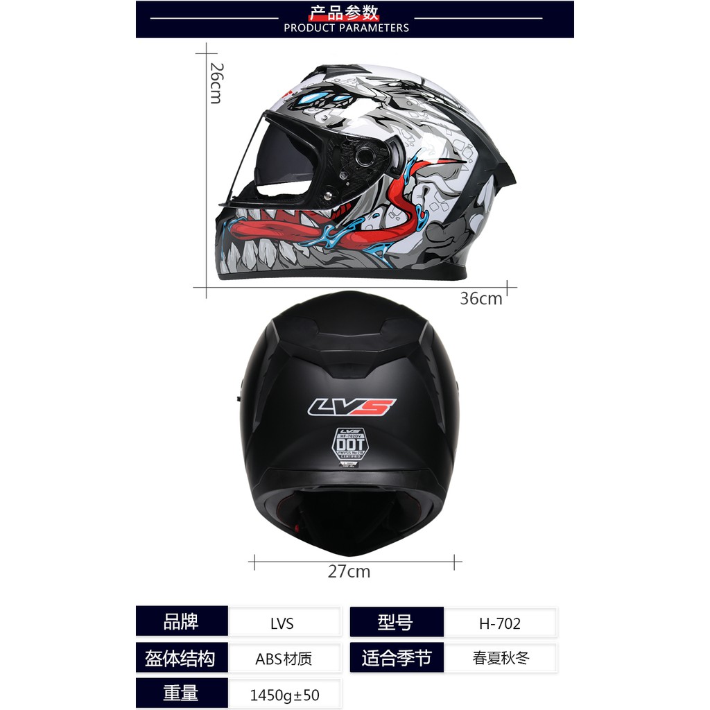 หมวกกันน็อคเต็มใบลายสวยแข็งแรงพร้อมกระจกหน้ารถ LVS-702 เลนส์คู่ของใหม่ปี 2020