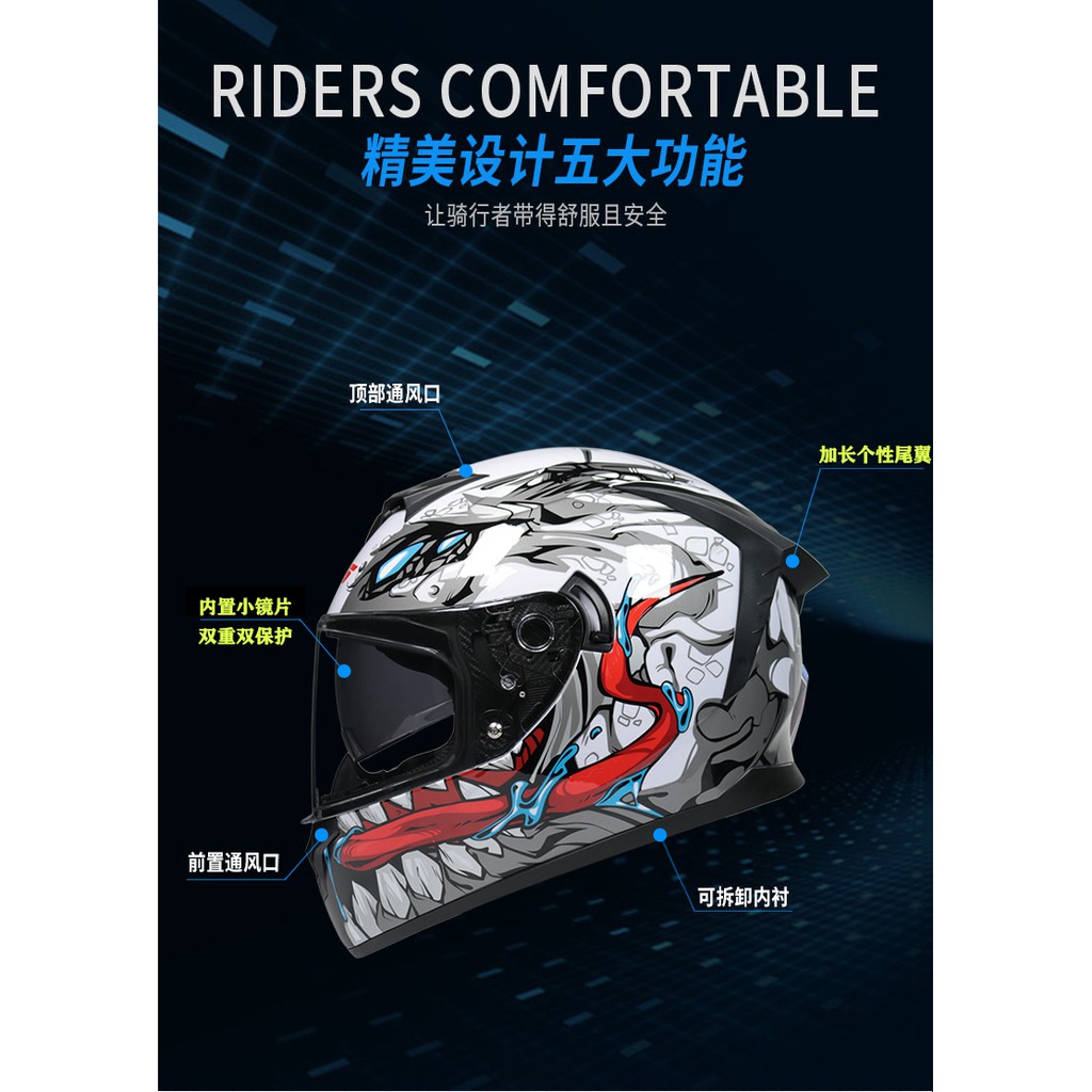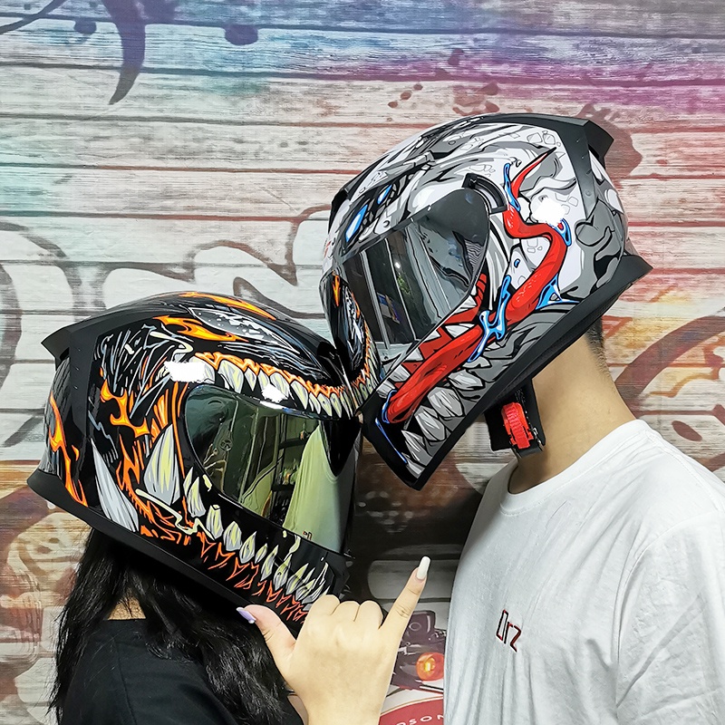 หมวกกันน็อคเต็มใบ ลายสวยงาม แข็งแรง พร้อมม่านบังแดด ลม LVS-702 เลนส์สองชั้น