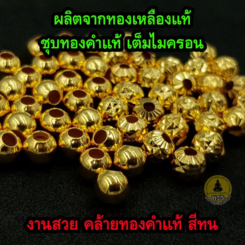 เม็ดทองไมครอน ขนาด 6มิล เนื้อทองเหลืองแท้ ชุบทองคำแท้ เต็มไมครอน งานสวยเหมือนทองแท้ สีทน ไม่ลอก ไม่ดำ