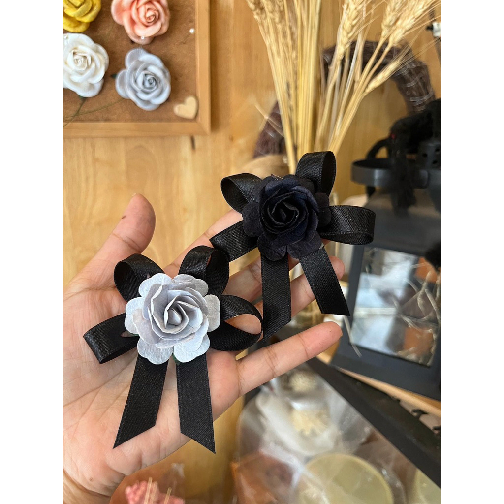 เข็มกลัดโบติดหน้าอก งานขาวดำ ( ดำเทา )