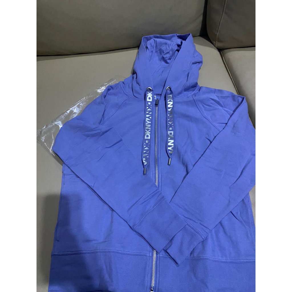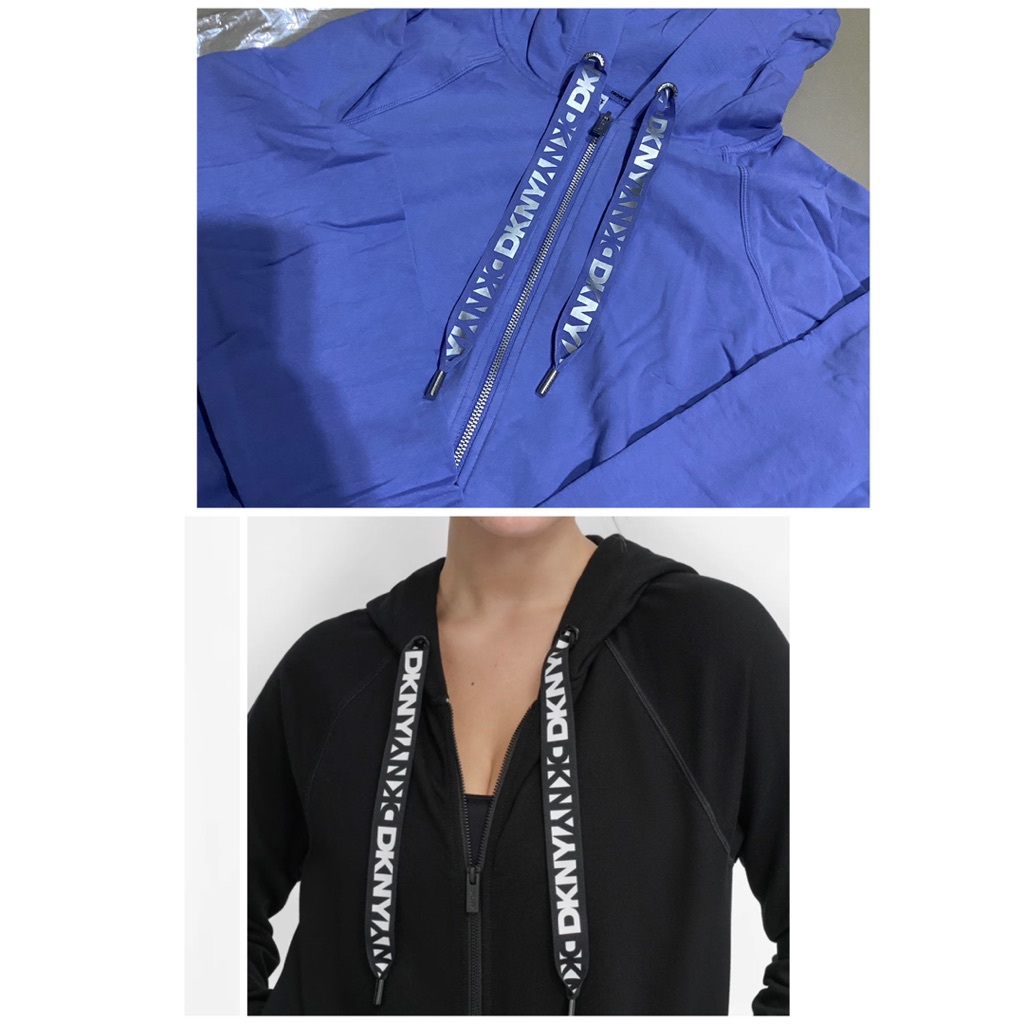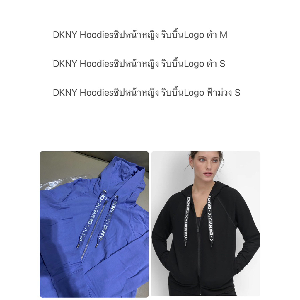 เสื้อ Hoodiesซิปหน้าหญิง ริบบิ้นLogo ดำ/ฟ้าม่วง