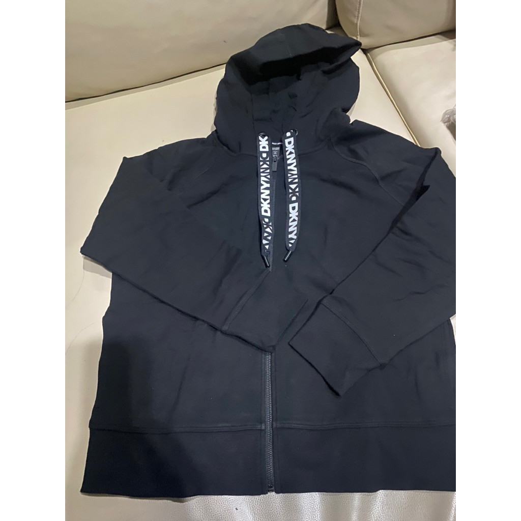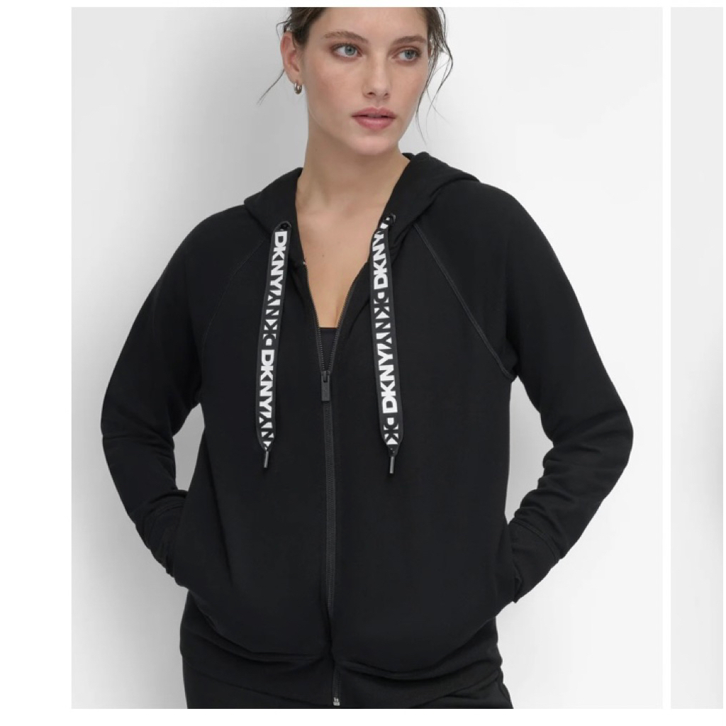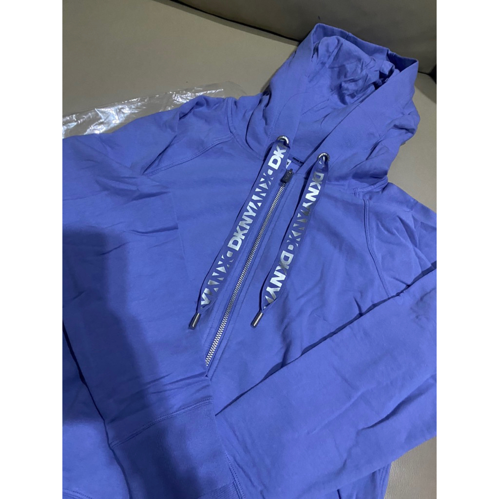 เสื้อ Hoodiesซิปหน้าหญิง ริบบิ้นLogo ดำ/ฟ้าม่วง