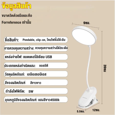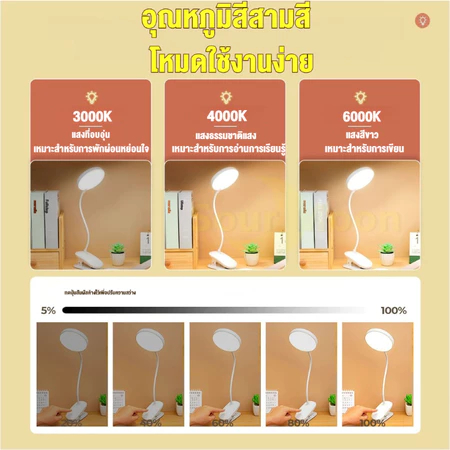 โคมไฟตั้งโต๊ะ นํา แสงสีขาวปรับได้ 3 สปีด ดีไซน์แบบหนีบ การอ่านที่สะดวกสบาย ป้องกันดวงตา ใช้งานง่าย