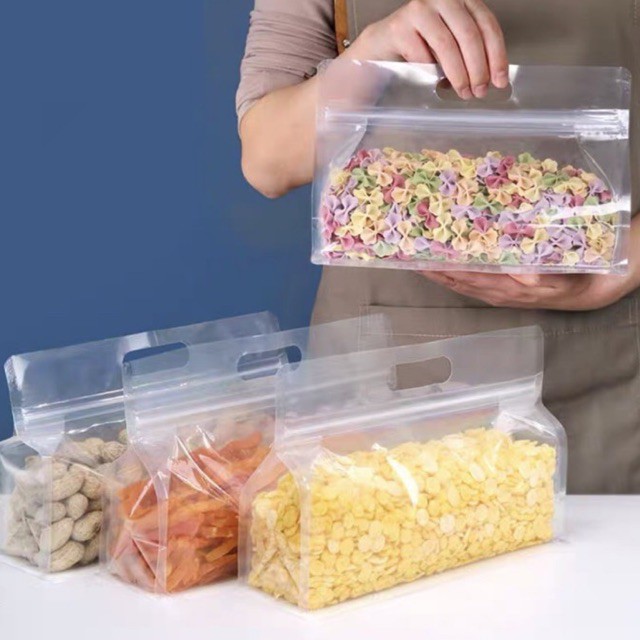 (10ใบ) G1 ถุงซิปขยายก้นขยายข้างสีใสแบบมีหูหิ้ว ถุงใส่ผักใส่ผลไม้ใส่อาหาร 24 26 28 30 เซนติเมตร