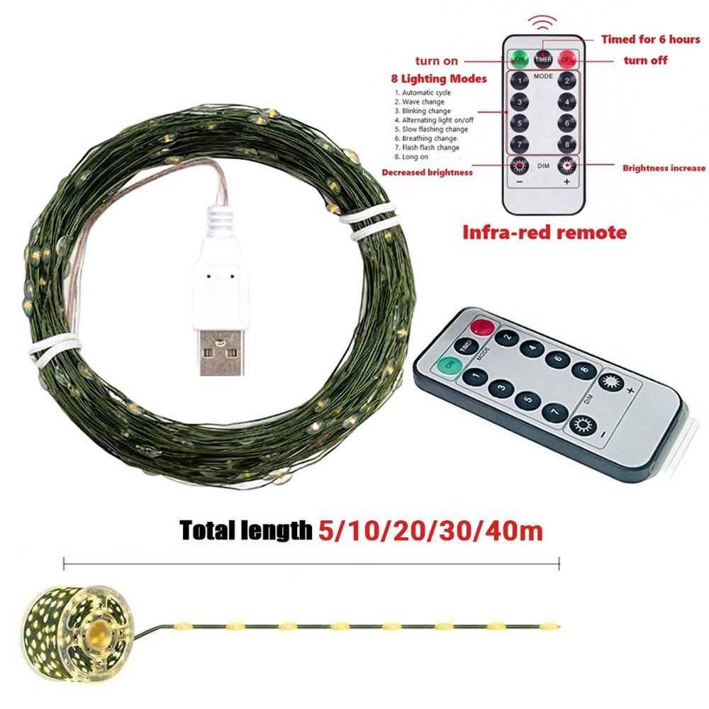 DANILO19Y ไฟต้นคริสต์มาส, ไฟ LED กันน้ํา 50/100, ไฟนางฟ้าหลากสีพร้อมรีโมทคอนโทรลลวดทองแดงสีเขียวไฟ LED String ปีใหม่