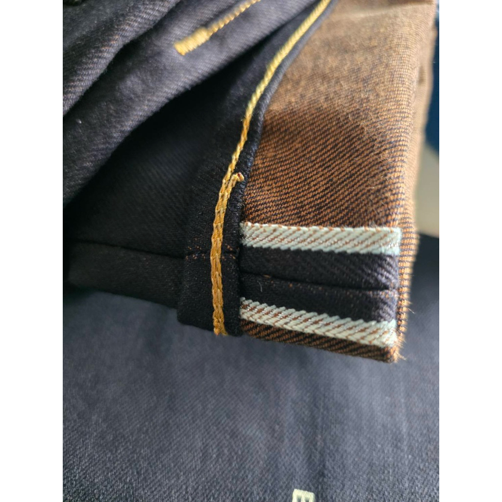 74 Denim 20oz WAKAYAMA/ Indigo x Brown.หลังสีนำ้ตาลเข้ม ?#ผ้าดิบญี่ปุ่นริมเงินมีทรงกะบอกตรงstraight